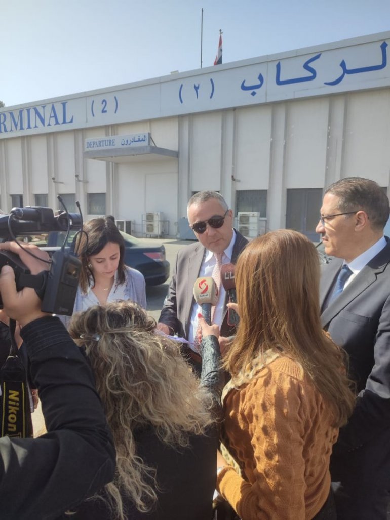На аеродрому у Дамаску, авион са хуманитарном помоћи из Србије дочекао је Мутаз Дуаји, заменик министра за локалну управу и животну средину.