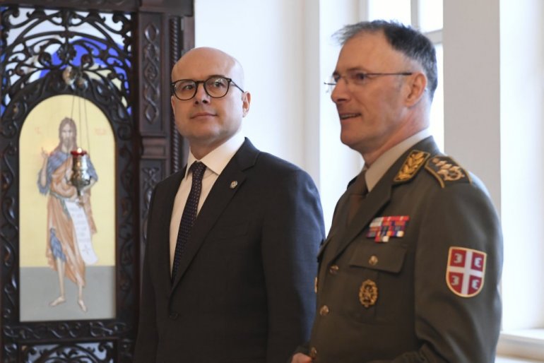 - Заједно са начелником Генералштаба, командантом Гарде и припадницима Гарде привилеговани смо да данас примимо два поклона од монаштва, односно братства манастира Ковиљ - иконе Светог Георгија и Светог Деспота Стефана. Много симболике, везе и снажне поруке онога што нам је насушно потребно, посебно у данашње време, а то је јединство државе и цркве, народа, јединство војске и цркве, нагласио је министар одбране.