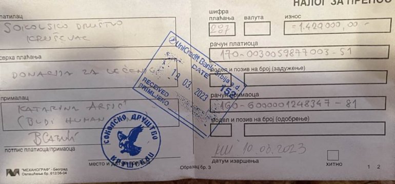 Новас је данас уплаћен на рачун хуманитарне фондације „Буди хуман“.