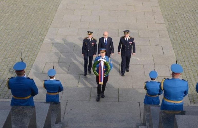 ПОТПРЕДСЕНИК Владе и министар одбране Милош Вучевић, у пратњи начелника Генералштаба Војске Србије генерала Милана Мојсиловића и команданта Команде за обуку генерал-мајора Жељка Петровића, положио је данас, поводом Дана Војске Србије, венац на Споменик Незнаном јунаку на Авали.