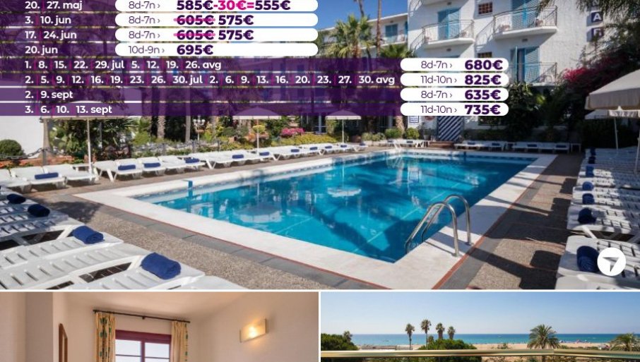 Налази се на само 50 метара од прелепе пешчане плаже, овај хотел је савршено место за забавни породични одмор у Каталонији у Коста Маресме, у летовалишту Малграт де Мар. Са балкона ваше собе гледате на Средоземно море. Одавде ћете такође моћи да видите хотелски отворени базен - идеалан за расхлађивање после врелог шпанског сунца. У међувремену деца могу уживати у мини клубу или на свом игралишту. Бесплатан шатл аутобус вози вас до других хотела у истом ланцу, тако да можете боље упознати ово место. У вечерњим часовима цела породица се окупи да ужива у забавном програму и јелима на бази шведског стола у ресторану.