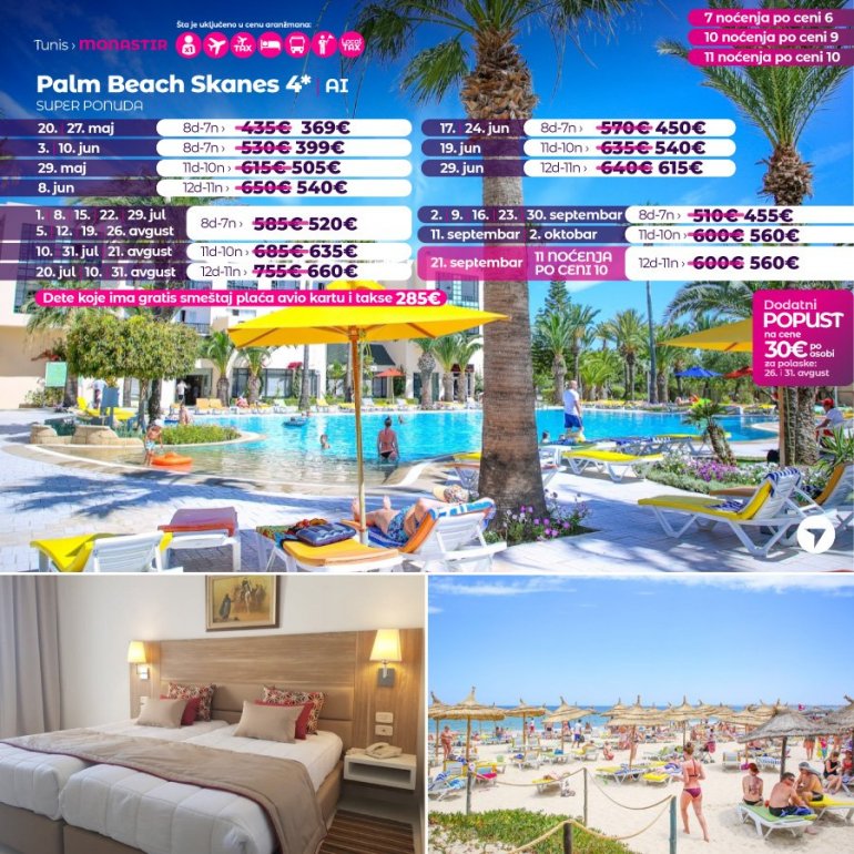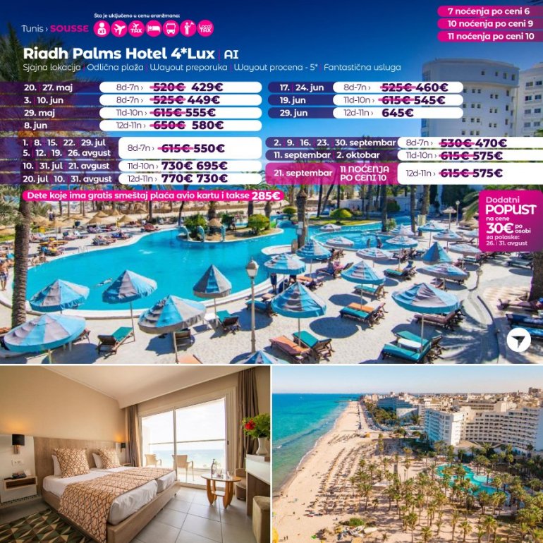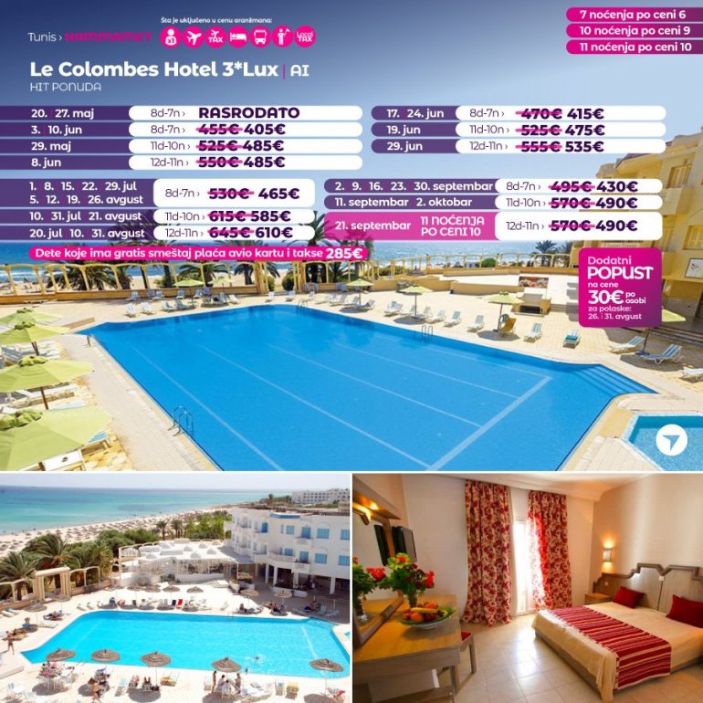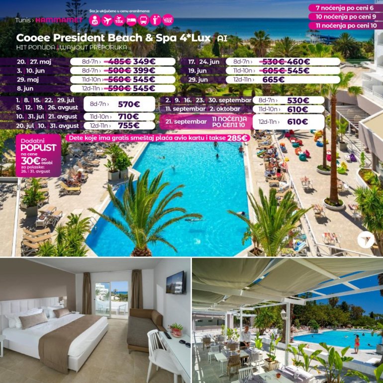 Због поверења које нам поклањате сваке године у све већем броју за вас смо припремили нове авантуре на новим дестинацијама. Представљамо вам нови бисер из Африке, после много година поново у понуди наше агенције – добродошли у Републику Тунис. После Египта, Кипра и УАЕ за који смо, захваљујући вама број 1 одлучили смо да за сезону 2023. за вас припремимо другу страну северне Африке.