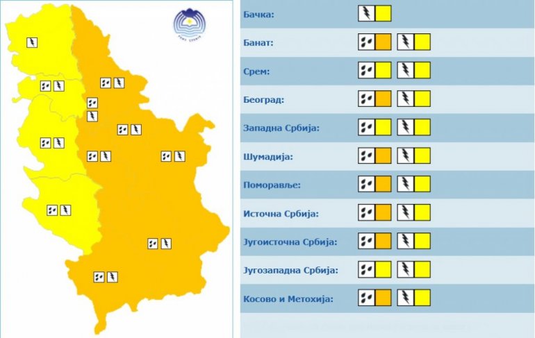 РХМЗ је огласио метеоаларм за целу земљу. Преовладава наранџасти метеоаларм - Време је опасно. Прогнозиранe су опасне временске појаве, а таквог су интензитета да могу проузроковати материјалну штету и бити опасне по људе и животиње. Треба бити врло обазрив, свестан ризика и редовно информисан о детаљима очекиваних метеоролошких услова.