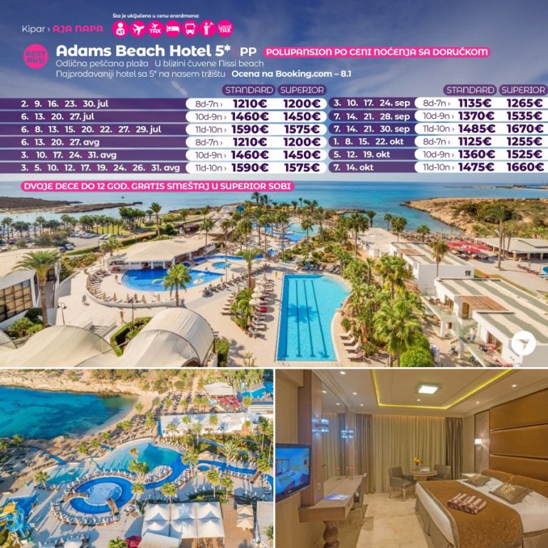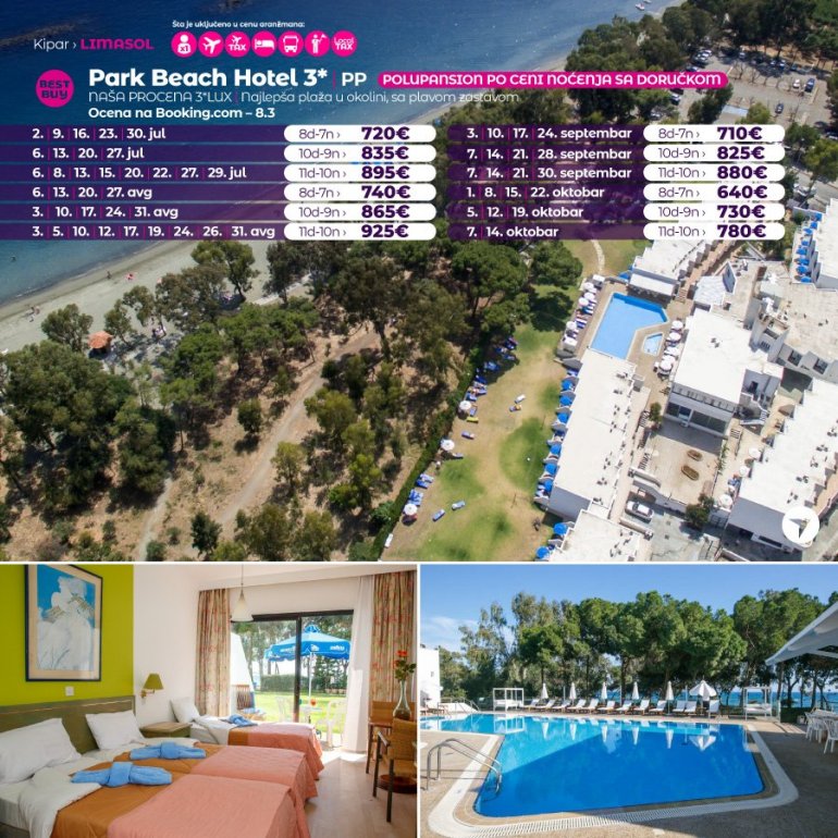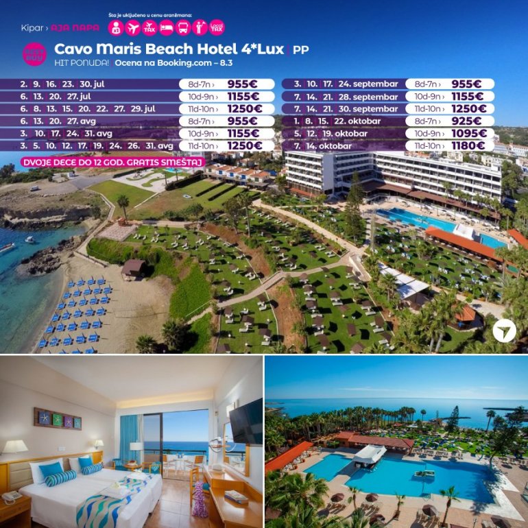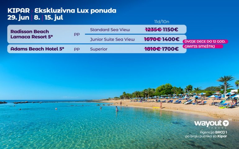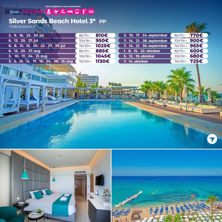 Дефинитивно нова омиљена летња дестинација наших туриста, свакако јесте рајско острво Кипар. Осетите чари Медитерана, фантастичних плажа, веома квалитетних хотела, изузетне гастрономске понуде, као и незаборавног ноћног провода. За наше путнике смо спремили одличну фирст минуте понуду са пажљиво изабраним хотелима, како на основу пређашњих искустава наших клијената, тако и на основу одличних оцена на туристичким порталима.