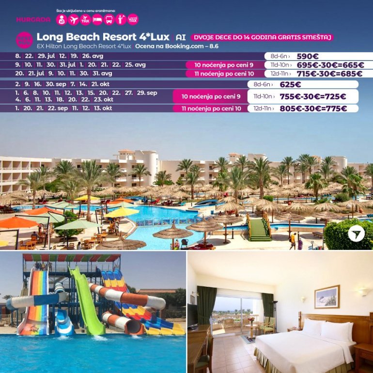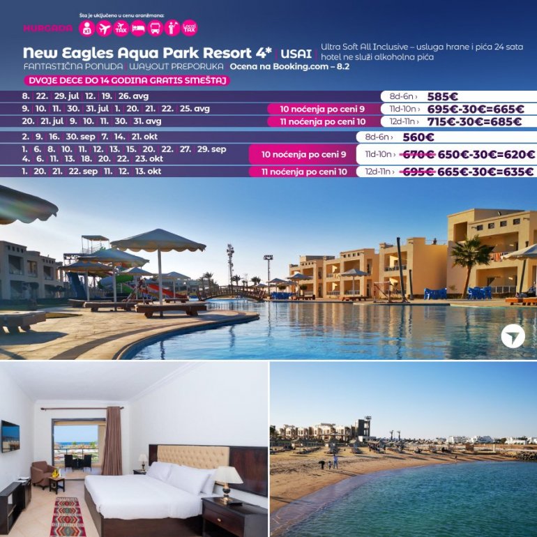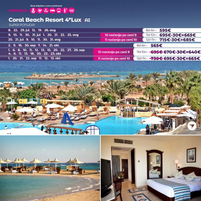 ХУРГАДА је дефинитивно постала омиљена дестинација наших путника последњих година, највише због фантастичне all inclusive услуге, сјајне анимације, као и породичног концепта који нуди највише по веома приступачним ценама за разлику од других дестинација.