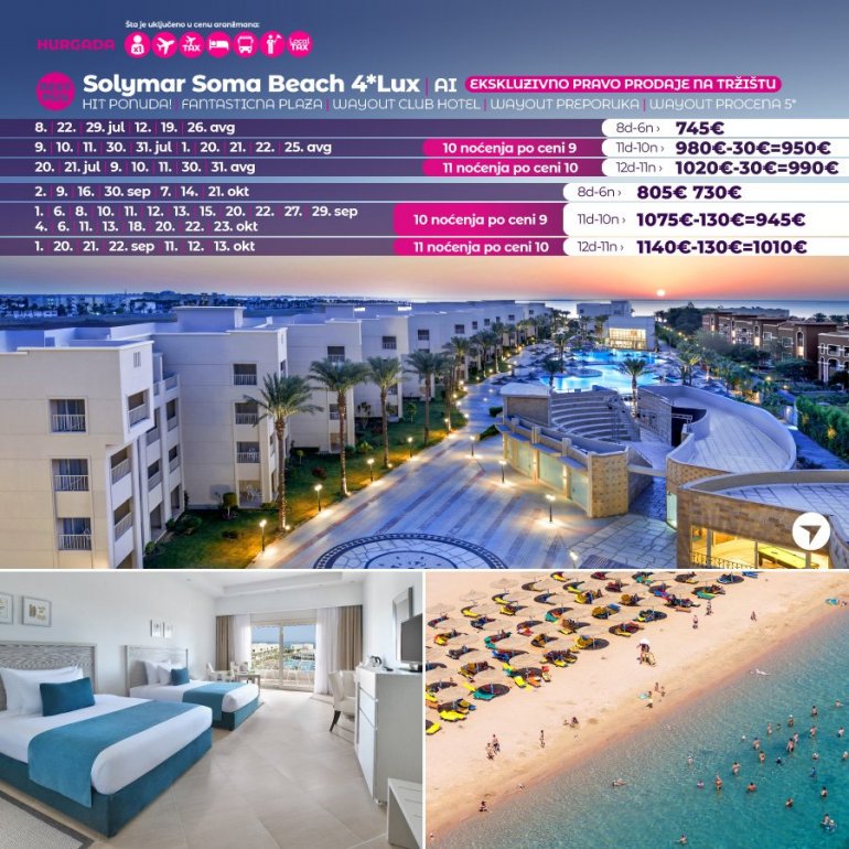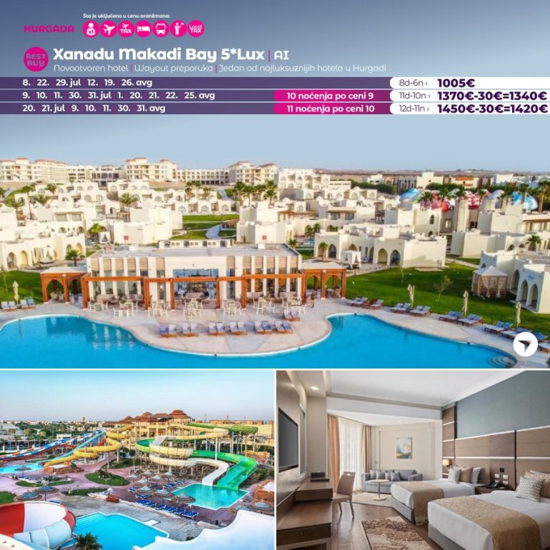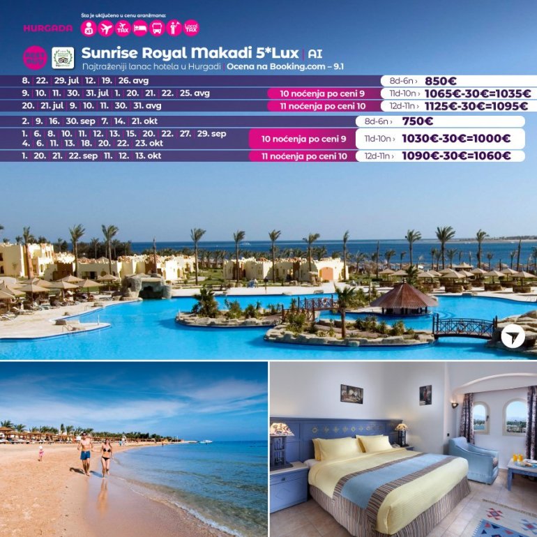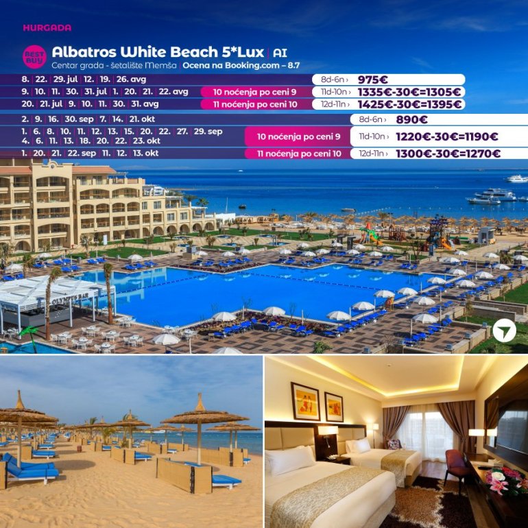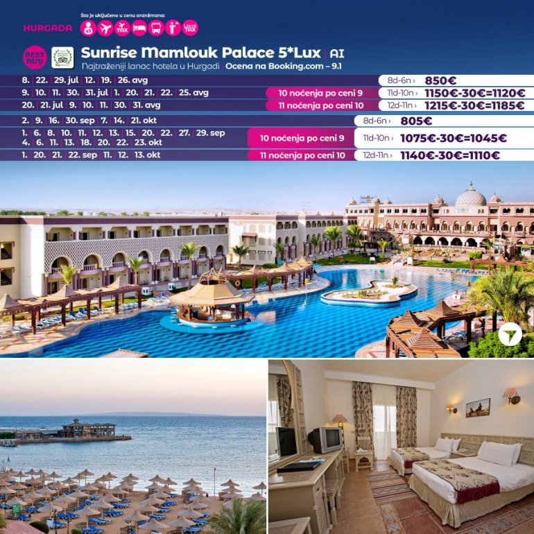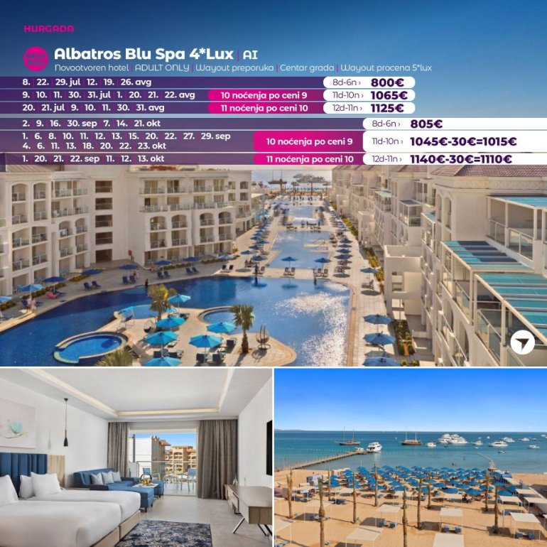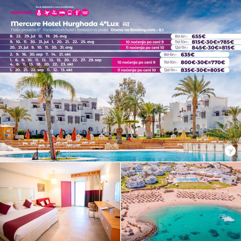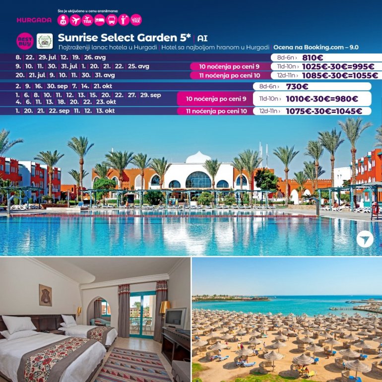 Време је идеално да посетите Хургаду, а као туроператор бр. 1 по броју путника из региона последњих 10 година, за своје путнике смо на основу дугогодишњег искуства издвојили из понуде BEST BUY хотеле који имају најбољи однос цене и квалитет.
