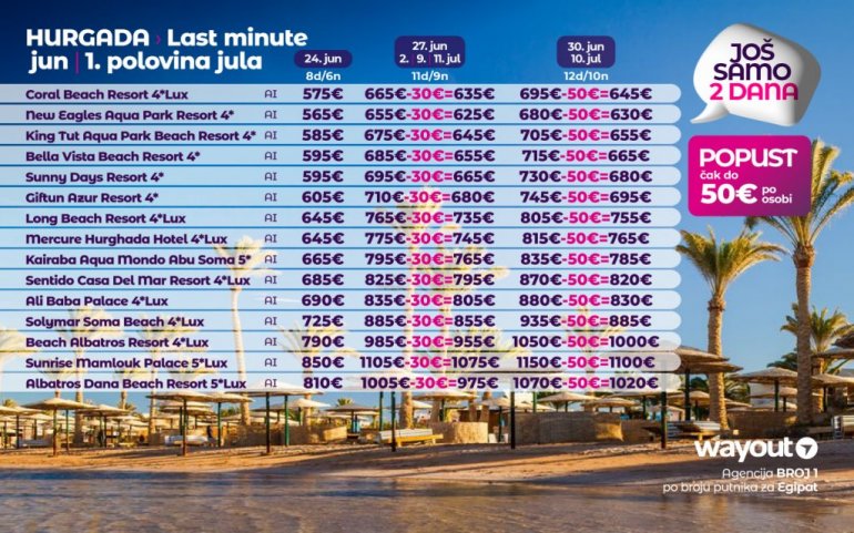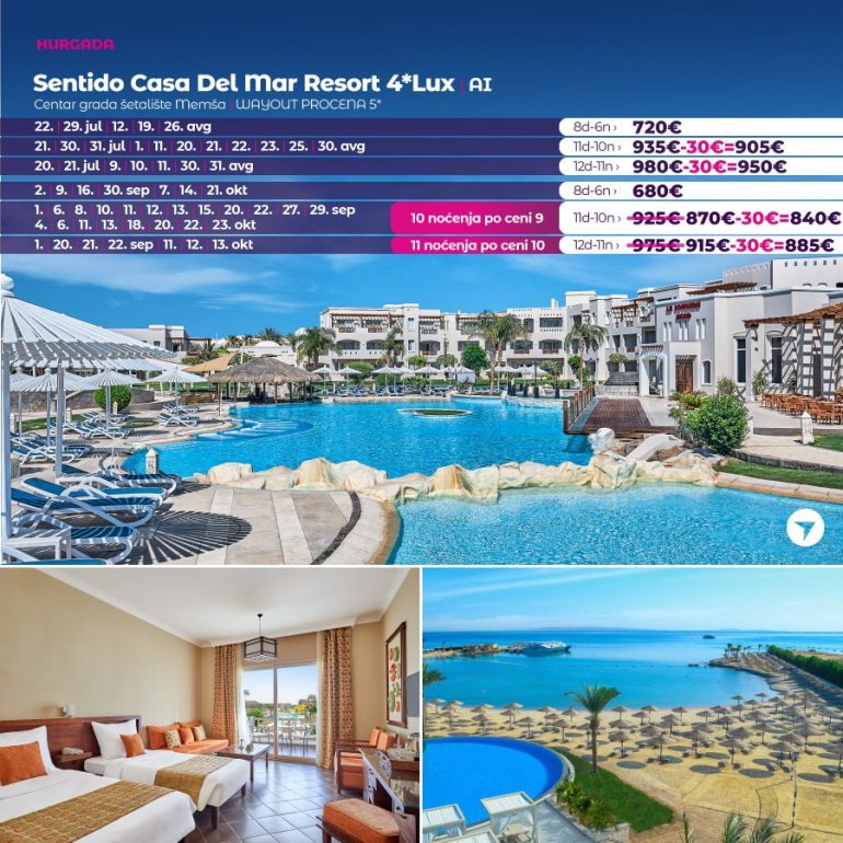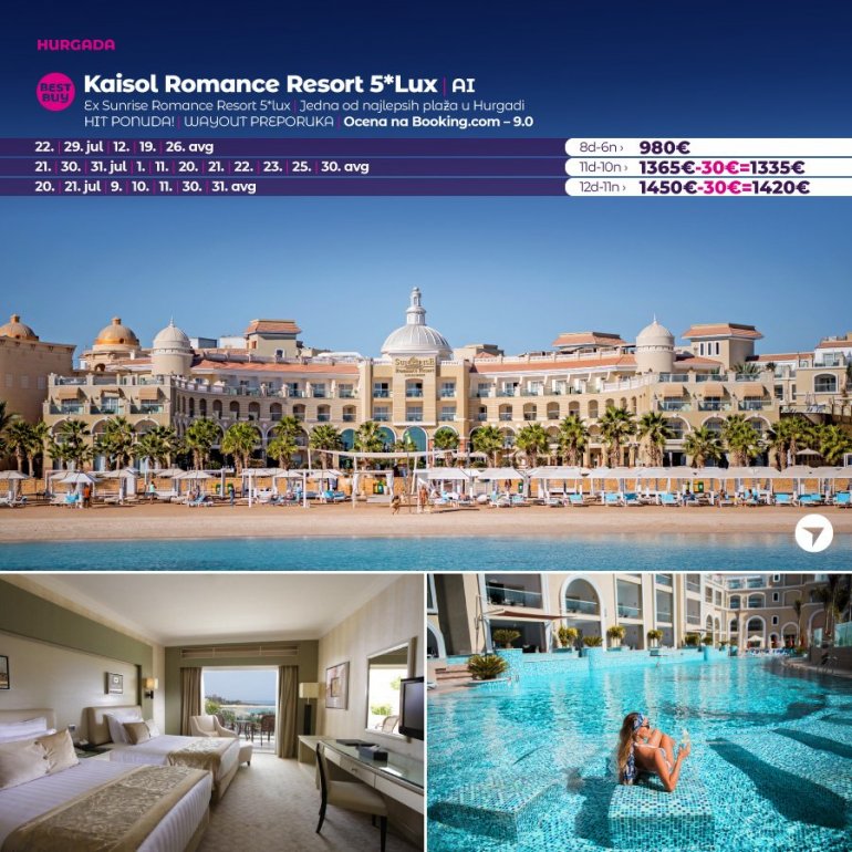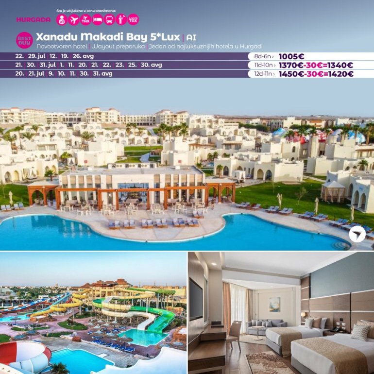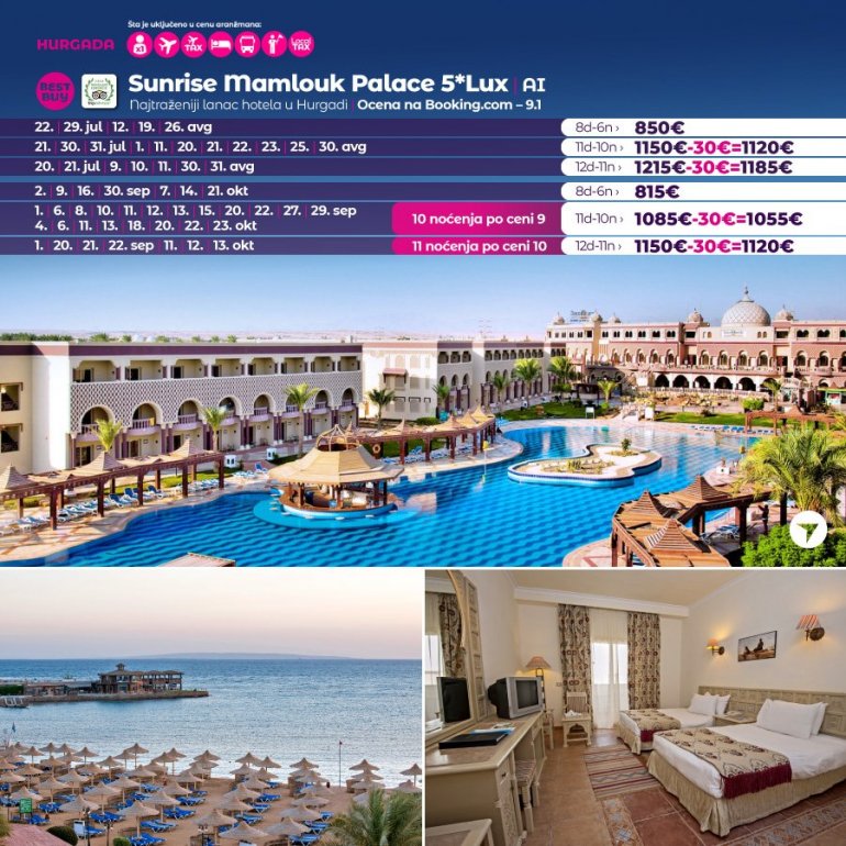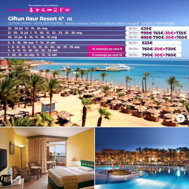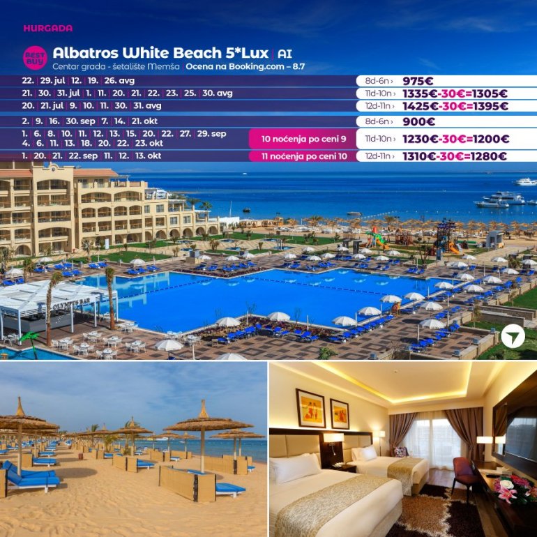 Време је идеално да посетите Хургаду, а као туроператор бр. 1 по броју путника из региона последњих 10 година, за своје путнике смо на основу дугогодишњег искуства издвојили из понуде БЕСТ БУY хотеле који имају најбољи однос цене и квалитет.