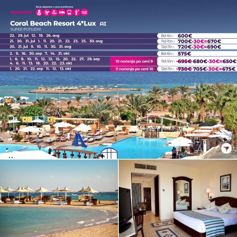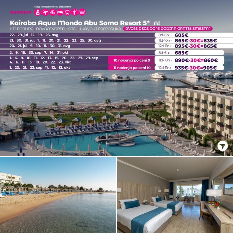 ХУРГАДА је дефинитивно постала омиљена дестинација наших путника последњих година, највише због фантастичне алл инцлусиве услуге, сјајне анимације, као и породичног концепта који нуди највише по веома приступачним ценама за разлику од других дестинација.