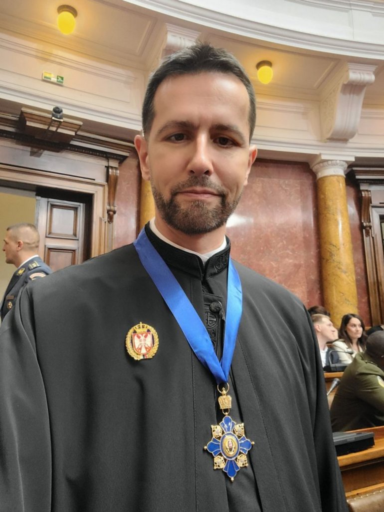 НА ГРУДИМА СТЕТОСКОП И ОРДЕН СВЕТОГ САВЕ: Протођакон и лекар др Петар Дабић диломирао и на студијама безбедности