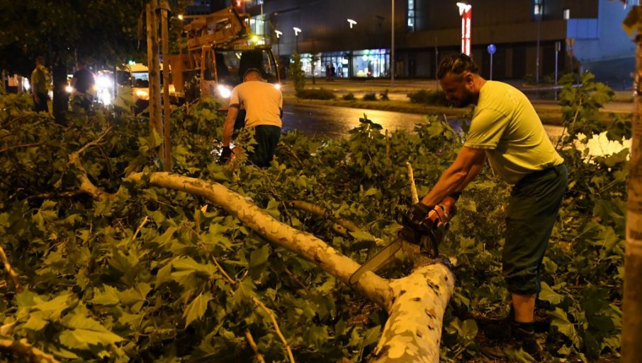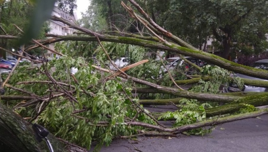 У Земуну, у Улици Рада Кончара код броја 15, дрво је пало на струјне каблове и покидало их. Градски саобраћај у овој улици је преусмерен на Горњоградску улицу, преноси РТС.