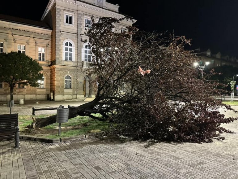 У центру Жаркова, у Трговачкој испред Максија, поломљено је дрвеће које је пало на паркиране аутомобиле.