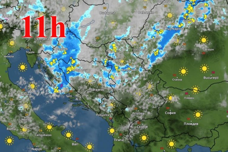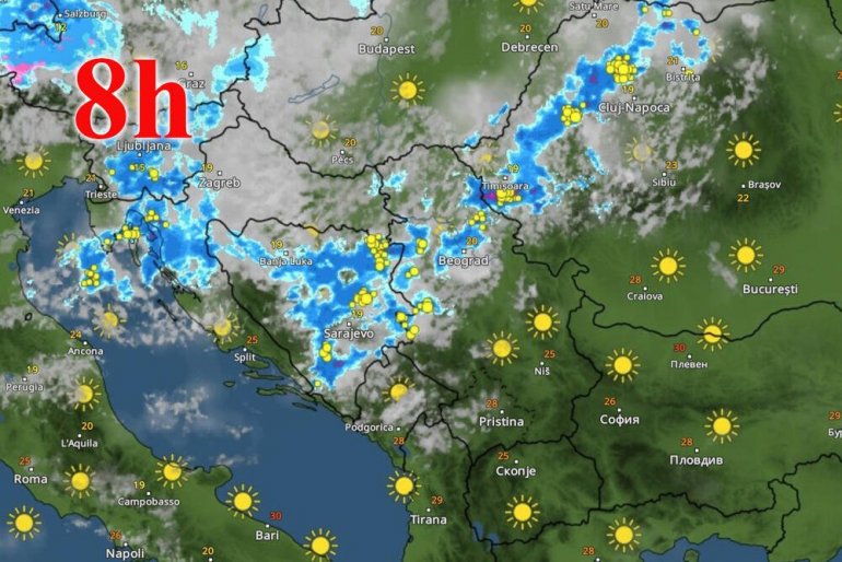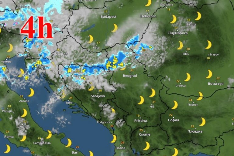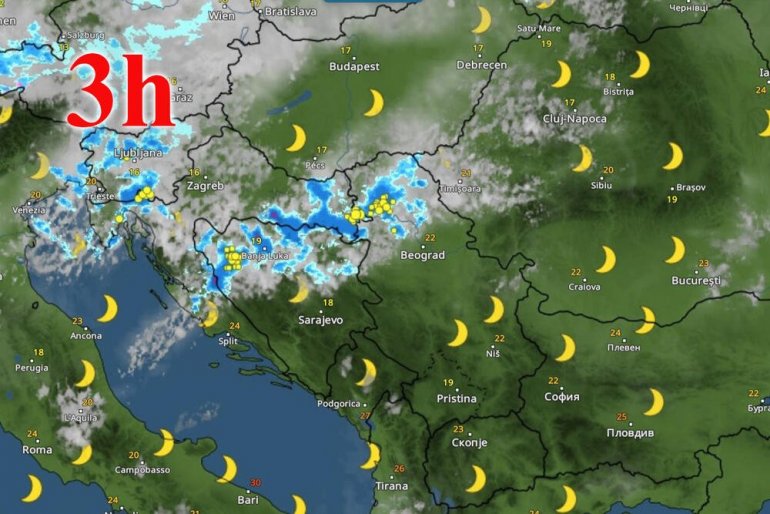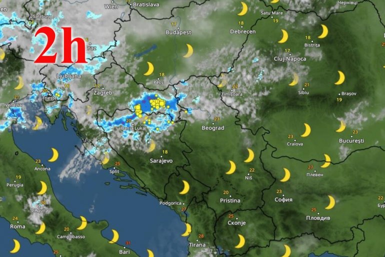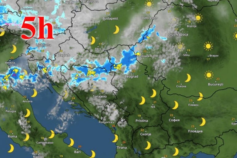 Велика олујна формација креће се од Италије у правцу североистока, а на највећем удару су Аустрија, Мађарска и Словачка. Како се види на радару, очекује се да нова суперћелијска олуја у Србију стигне око поноћи и то у Војводину. Потом ће се невреме задржати и наредног дана, односно сутра.