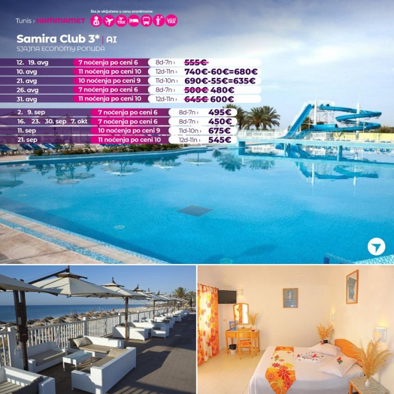 Искључиво са АирСербиа у Тунис! 7 ноћења по цени 6 ноћења / 10 ноћења по цени 9 ноћења / 11 ноћења по цени 10 ноћења.