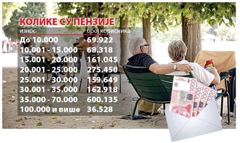 Просечна пензија, према последњем пресеку за мај ове године, била је 37.821 динар. Међутим, више од половине корисника, односно њих 976.569 (59,32 одсто) примало је месечно мање од овог износа.