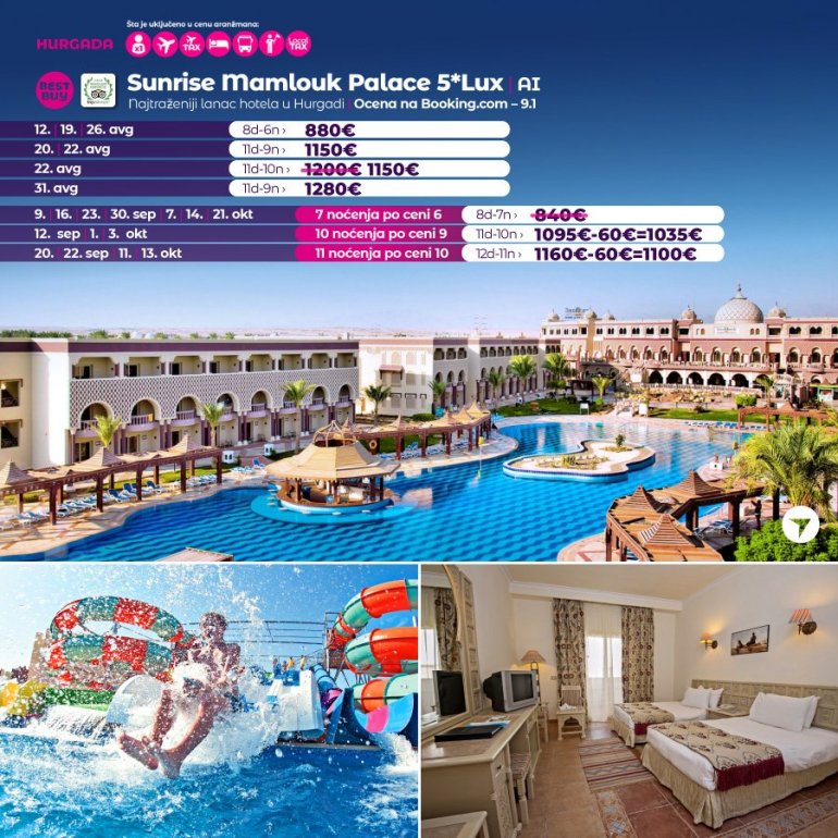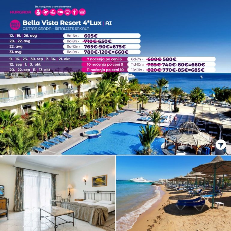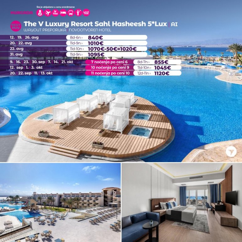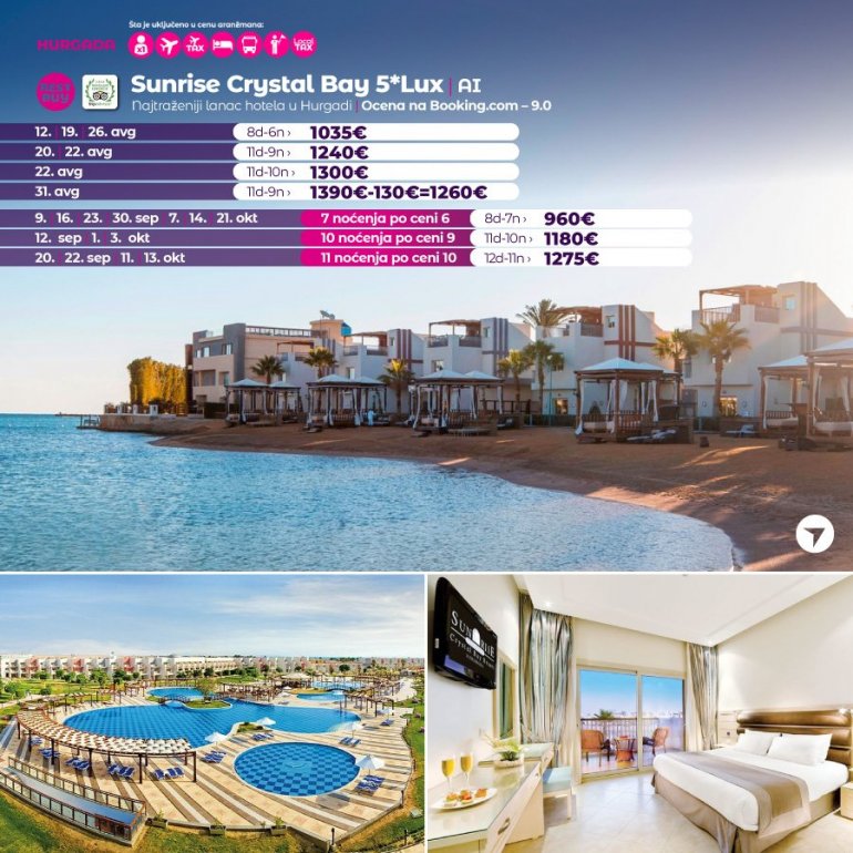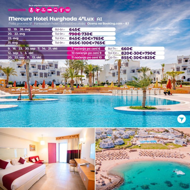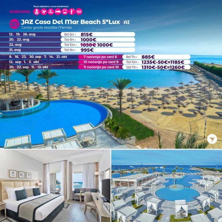 Време је идеално да посетите Хургаду, а као туроператор бр. 1 по броју путника из региона последњих 10 година, за своје путнике смо на основу дугогодишњег искуства издвојили из понуде BEST BUY хотеле који имају најбољи однос цене и квалитет.