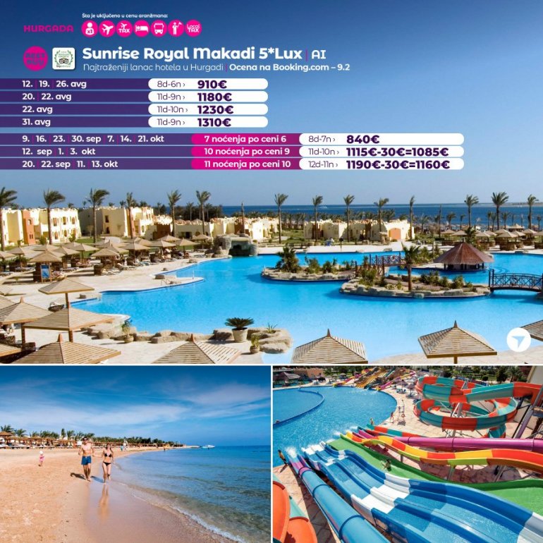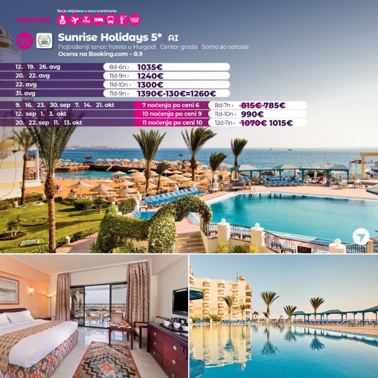 ХУРГАДА је дефинитивно постала омиљена дестинација наших путника последњих година, највише због фантастичне алл инцлусиве услуге, сјајне анимације, као и породичног концепта који нуди највише по веома приступачним ценама за разлику од других дестинација.
