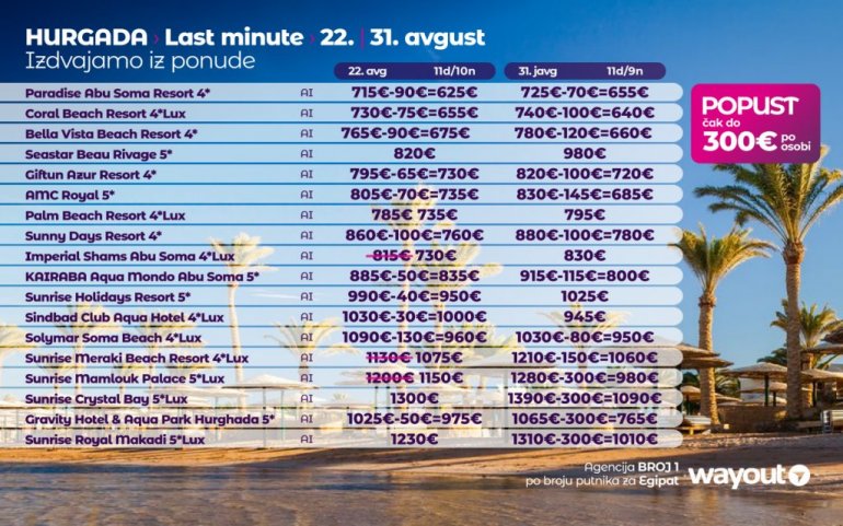 Позивамо све заинтересоване путнике да користе нашу онлине платформу за резервације и путем сајта www.wayout.rs или путем маил адресе office@wayout.co.rs резервишу своје путовање из снова.