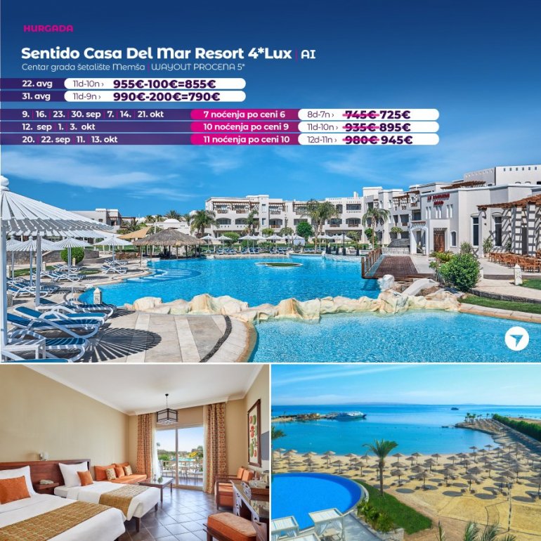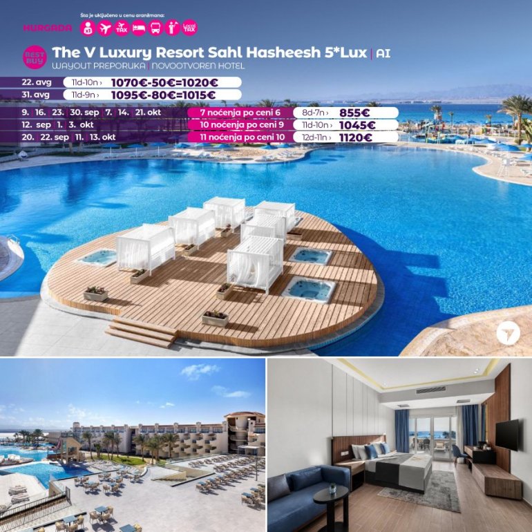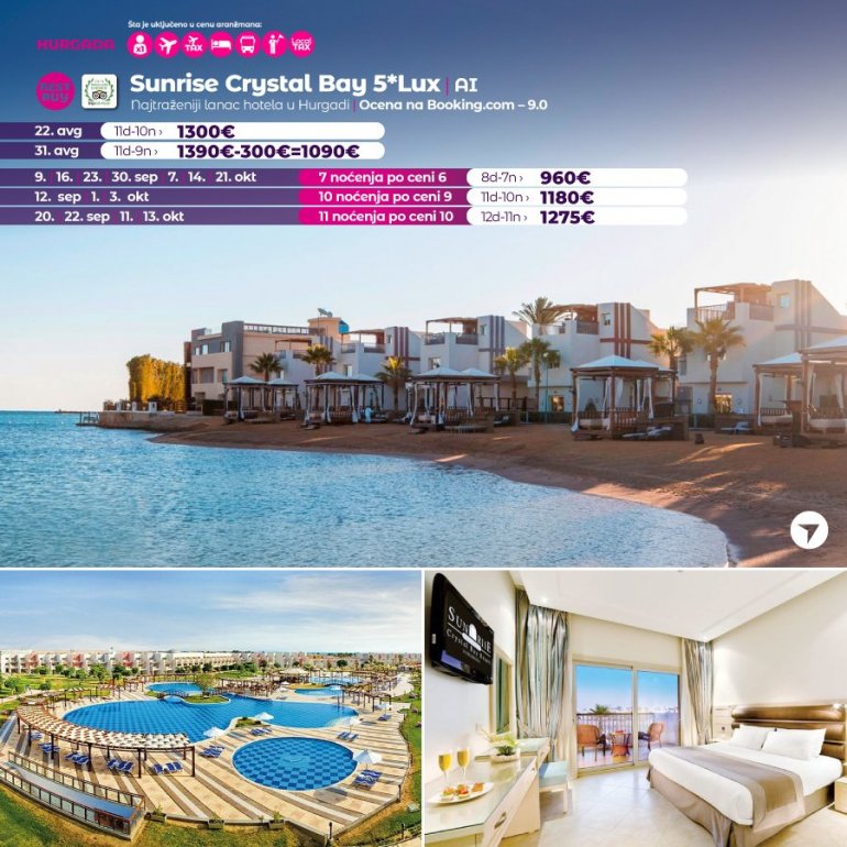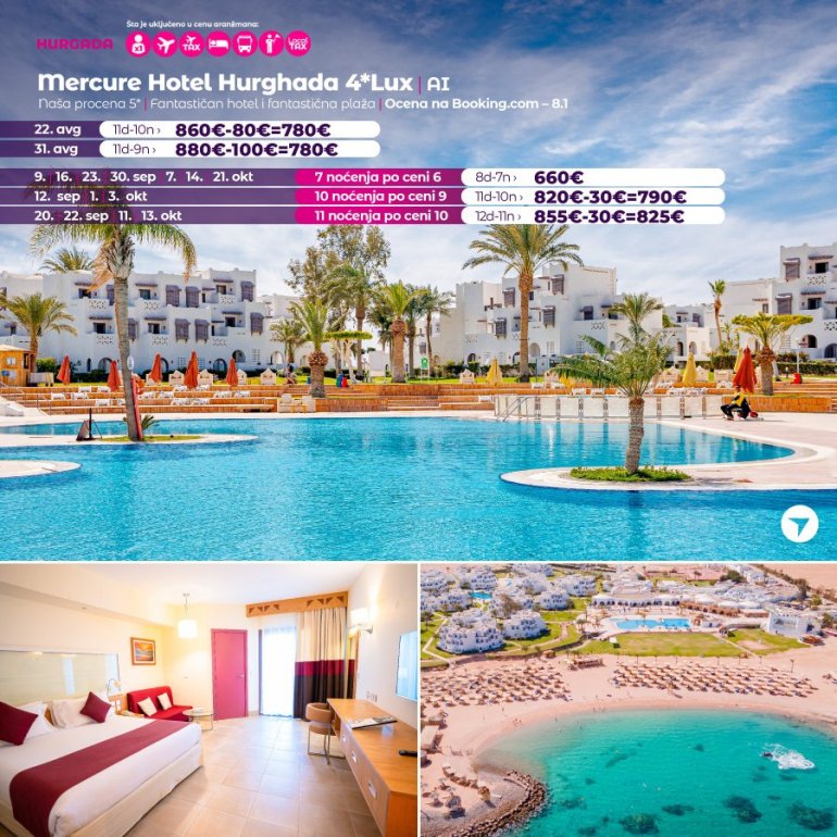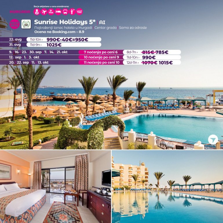 Време је идеално да посетите Хургаду, а као туроператор бр. 1 по броју путника из региона последњих 10 година, за своје путнике смо на основу дугогодишњег искуства издвојили из понуде BEST BUY хотеле који имају најбољи однос цене и квалитет.
