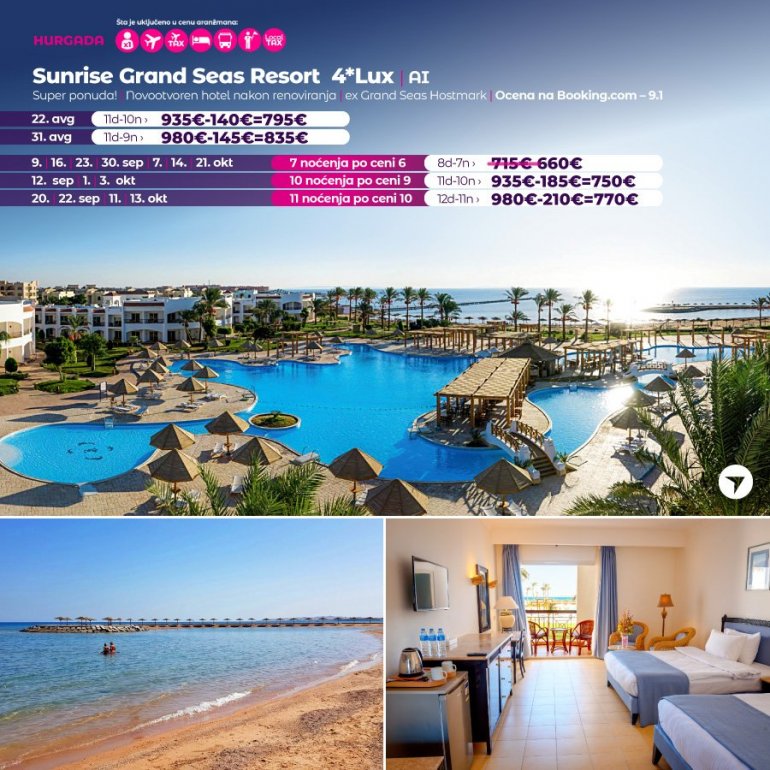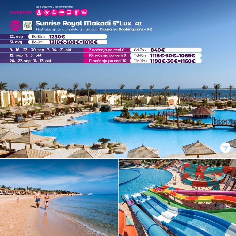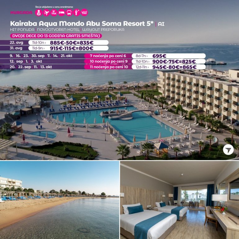 ХУРГАДА је дефинитивно постала омиљена дестинација наших путника последњих година, највише због фантастичне алл инцлусиве услуге, сјајне анимације, као и породичног концепта који нуди највише по веома приступачним ценама за разлику од других дестинација.