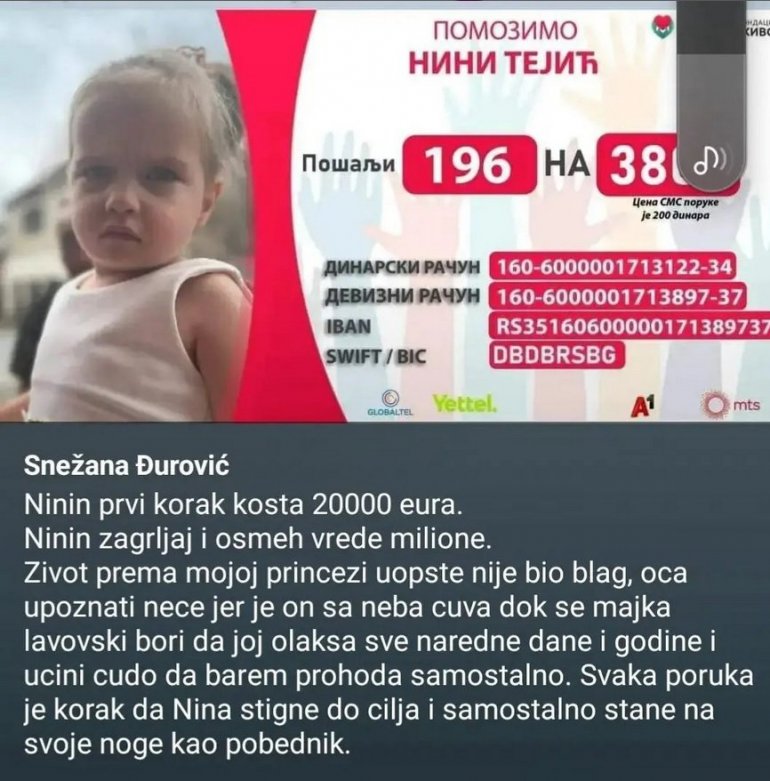 БУДИМО ХУМАНИ: Помозимо Нини да оде на две операције