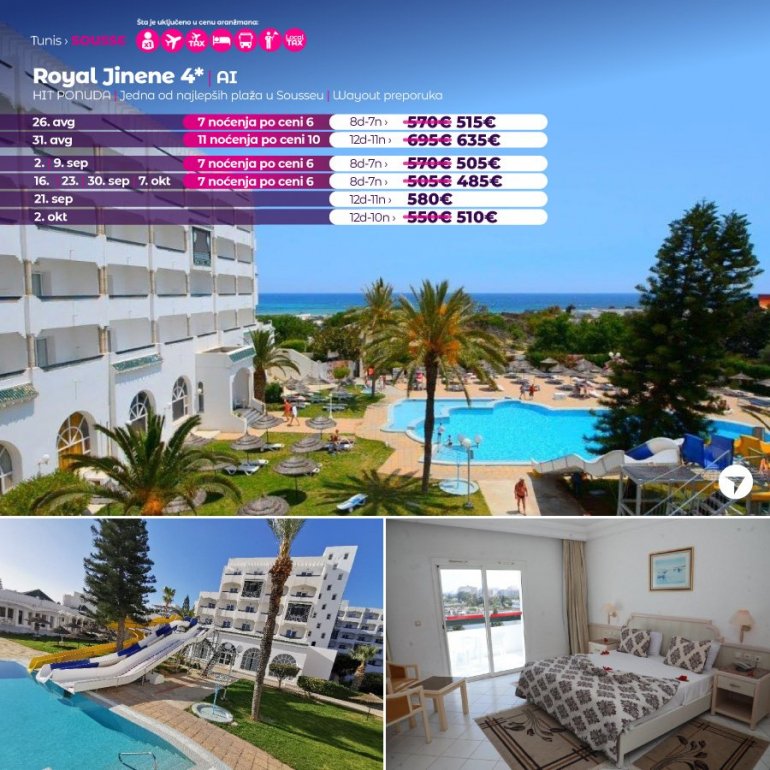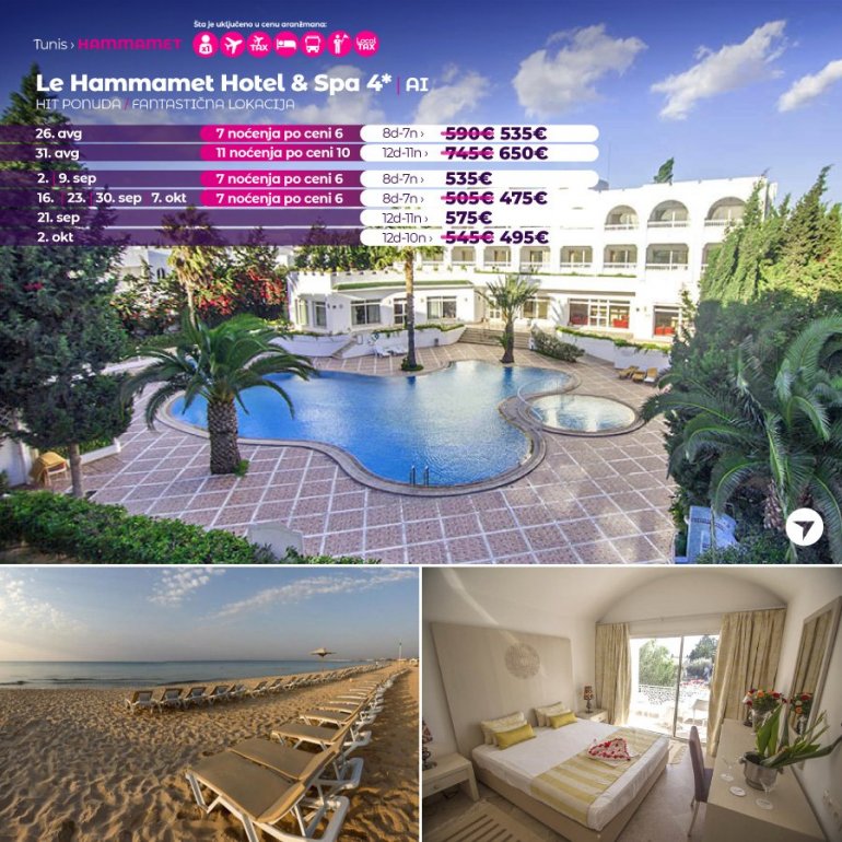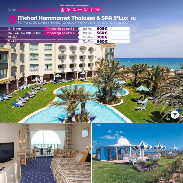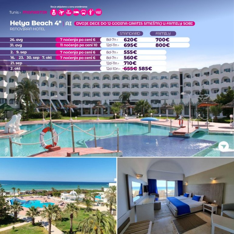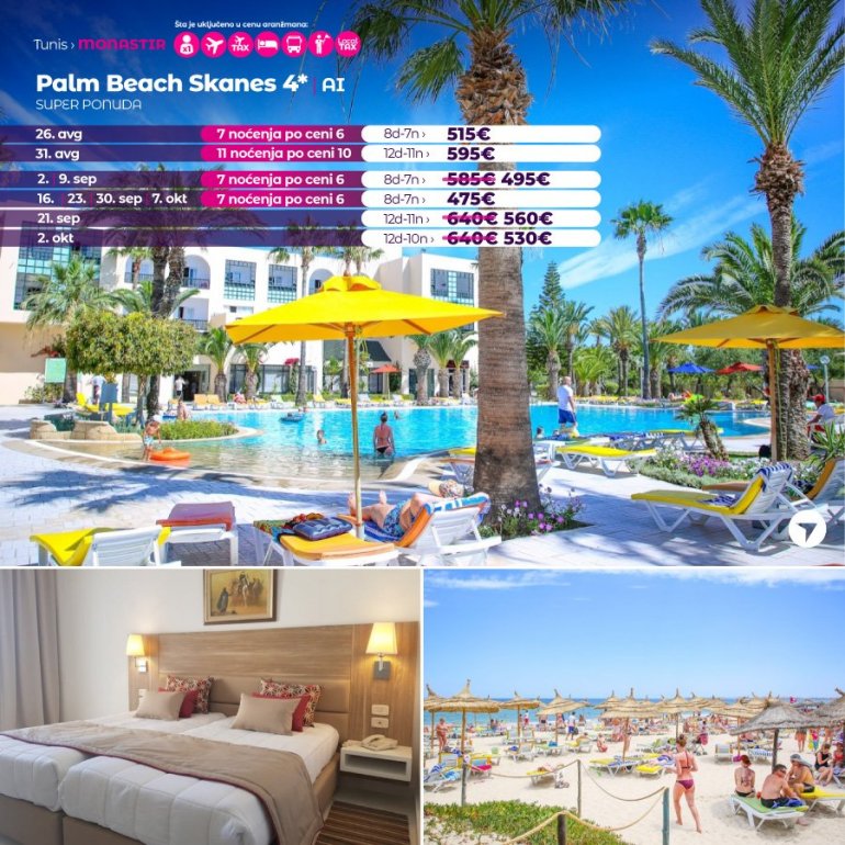 Искључиво са AirSerbia у Тунис! 7 ноћења по цени 6 ноћења / 10 ноћења по цени 9 ноћења / 11 ноћења по цени 10 ноћења. Издвајамо из понуде најтраженије хотеле за лето 2023: