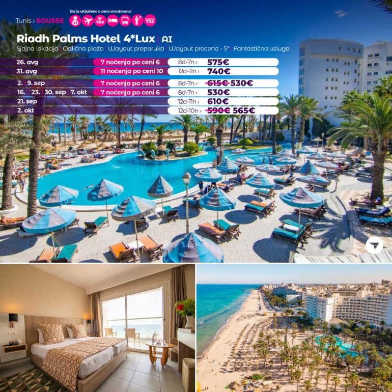 Због поверења које нам поклањате сваке године у све већем броју за вас смо припремили нове авантуре на новим дестинацијама. Представљамо вам нови бисер из Африке, после много година поново у понуди наше агенције – добродошли у Републику Тунис. После Египта, Кипра и УАЕ за који смо, захваљујући вама број 1 одлучили смо да за сезону 2023. за вас припремимо другу страну северне Африке.