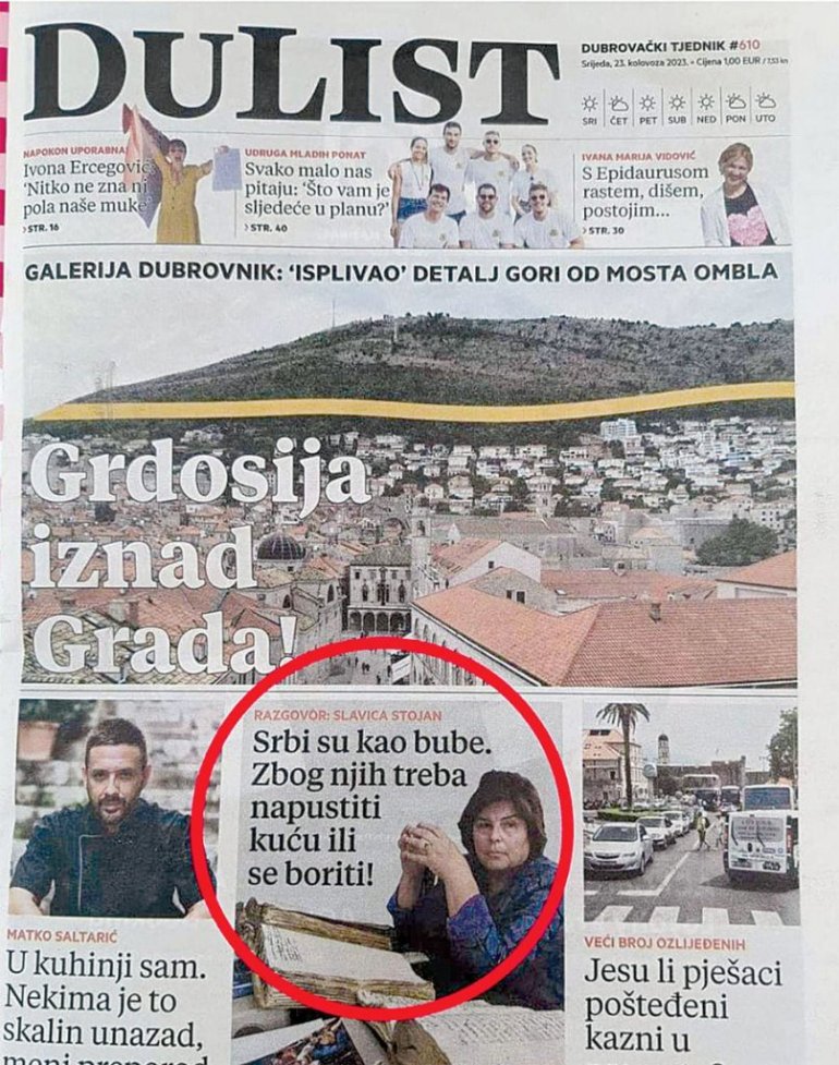 Иначе, непримерена изјава хрватске књижевнице, није прва која долази из суседства и то са највиших научних адреса. Увредљиве поруке стижу годинама, па смо тако чули и неумесну изјаву потпредседника Матице хрватске Мариа Јареба који је рекао: Срби се отимају за дубровачку књижевност као један од највећих досега хрватске културе, јер у то доба Срби су имали само гусле, ракију и прасетину, немају ништа слично што би их сврстало међу друге европске народе.