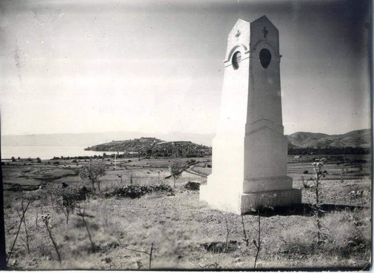 Остало је записано да је тај тужни споменик наручио тадашњи охридски епископ Николај (Велимировић), у знак подсећања на мученичку смрт четири стотине младих регрута које су изболи и поклали Бугари, код села Рамне, 1915. године. При врху споменика у овалном удубљењу био је утиснут рељеф двоглавог орла, на коме су биле само две речи "Четири стотине - 1915", а на десној страни "Изгинулим 1915. у селу Рамне". Споменик су, међутим, 1941. бугарски фашистички окупатори срушили, практично сравнили са земљом.