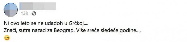 - Ни ово лето се не удадох у Грчкој... Значи, сутра назад за Београд. Више среће следеће године - написала је Данијела.