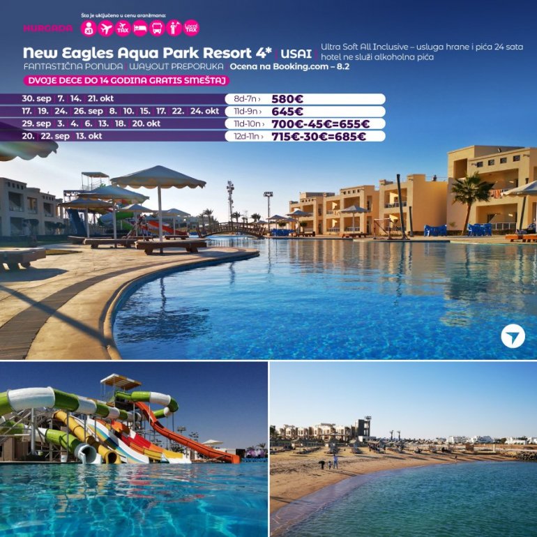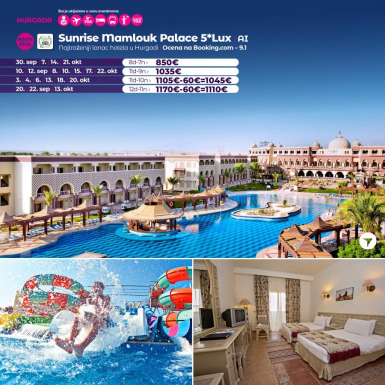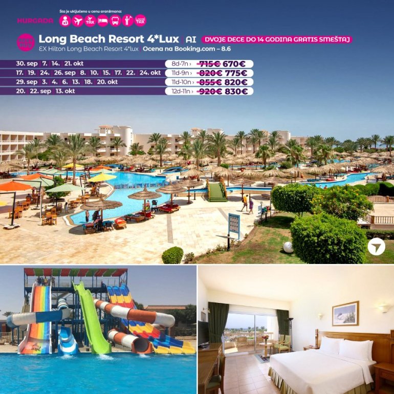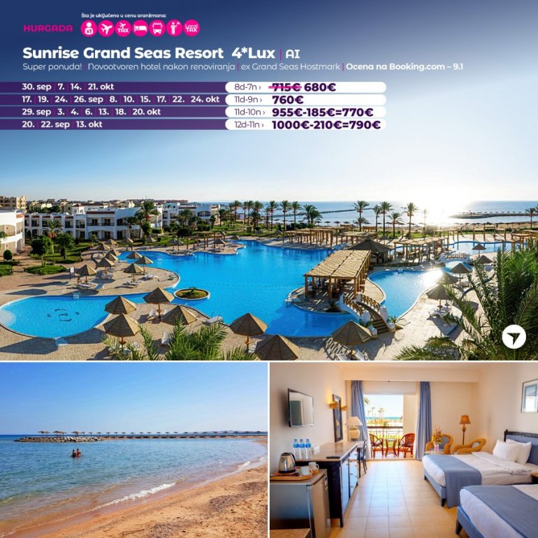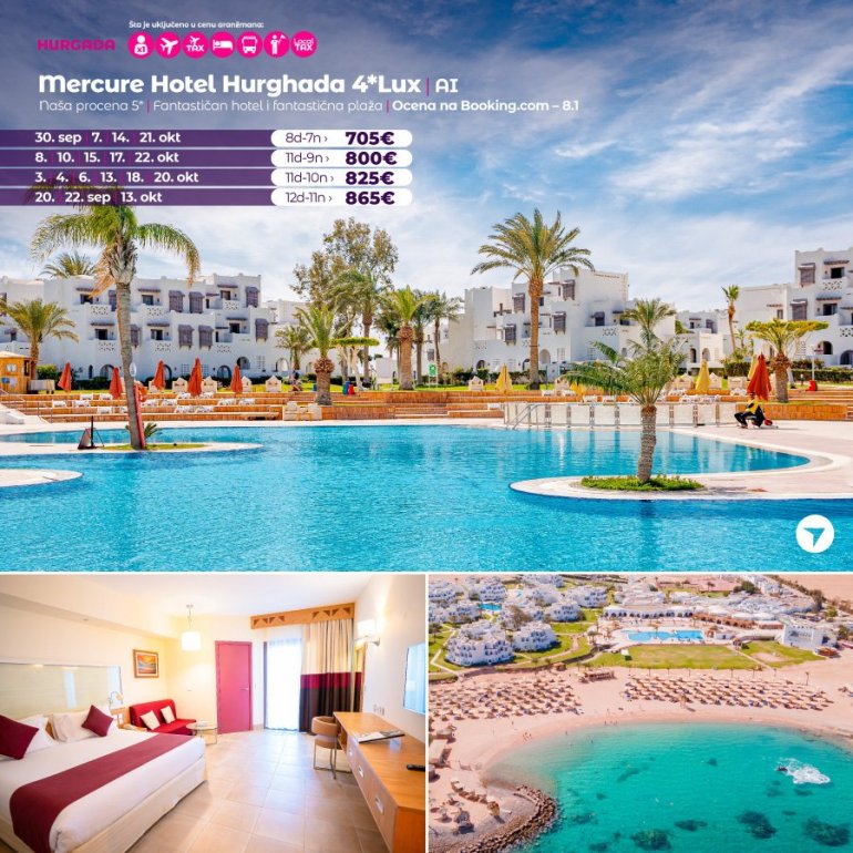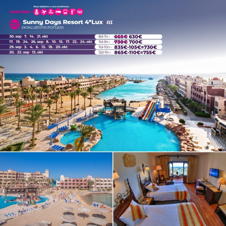 Хургада је дефинитивно постала омиљена дестинација наших путника последњих година, највише због фантастичне алл инцлусиве услуге, сјајне анимације, као и породичног концепта који нуди највише по веома приступачним ценама за разлику од других дестинација.