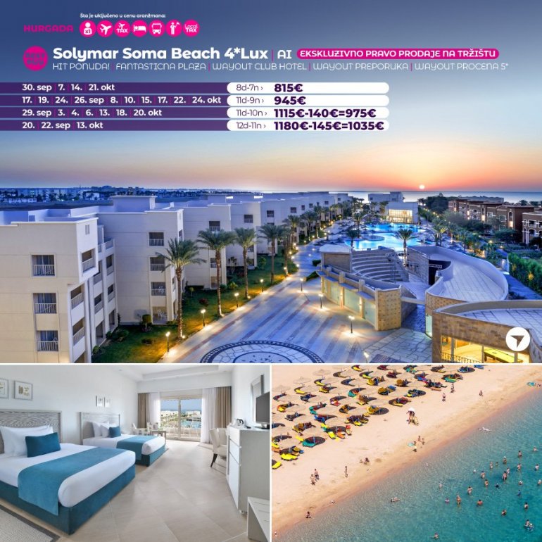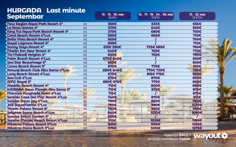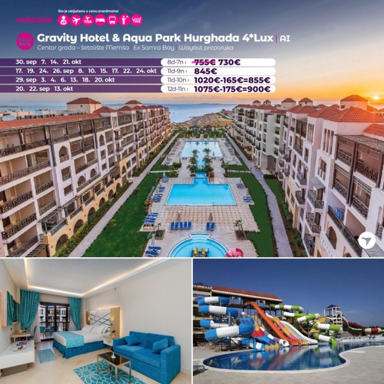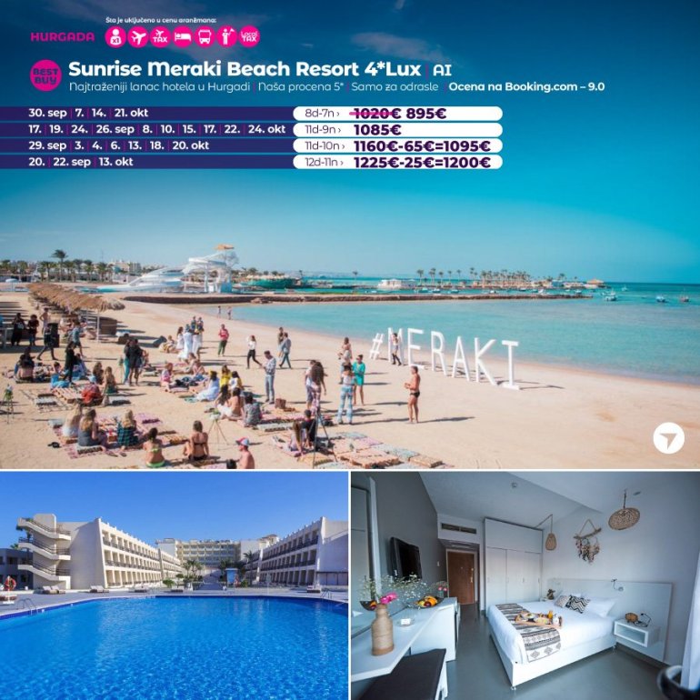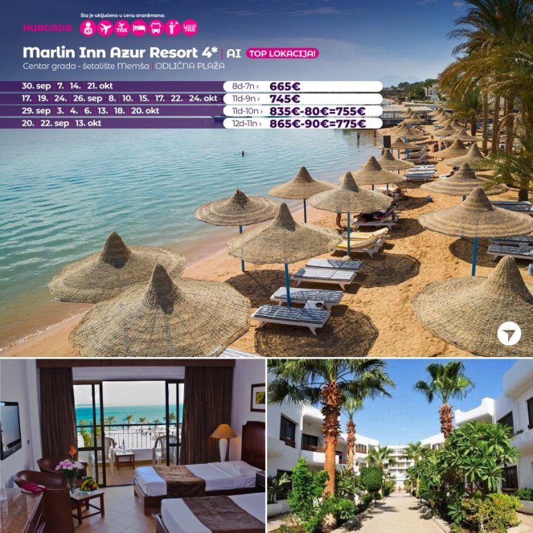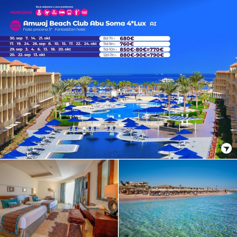 Хургада је дефинитивно постала омиљена дестинација наших путника последњих година, највише због фантастичне алл инцлусиве услуге, сјајне анимације, као и породичног концепта који нуди највише по веома приступачним ценама за разлику од других дестинација.