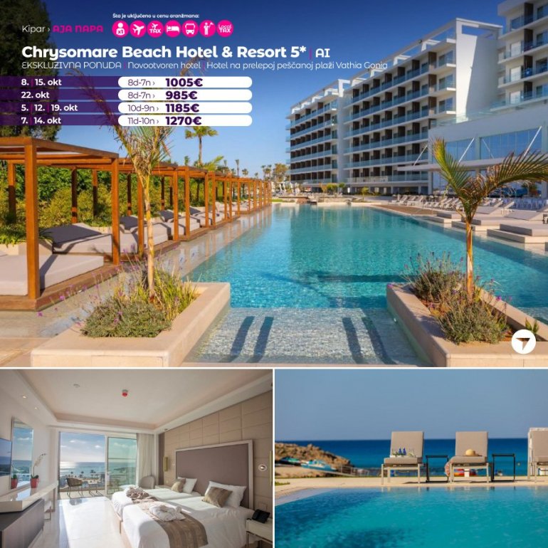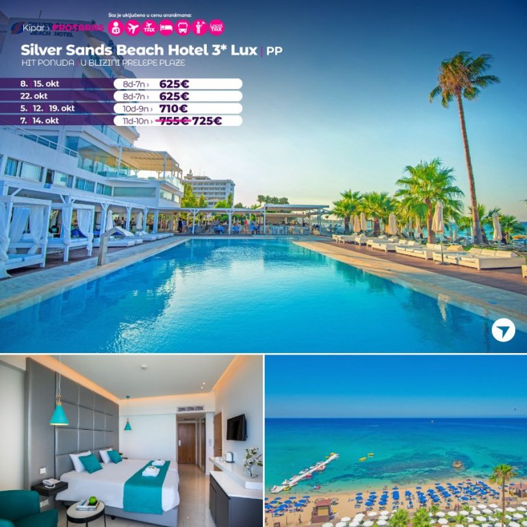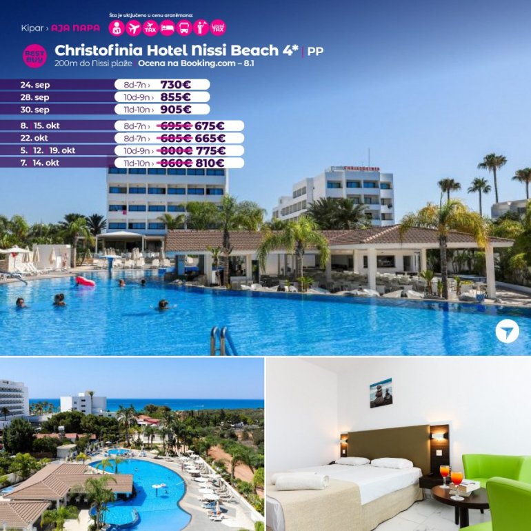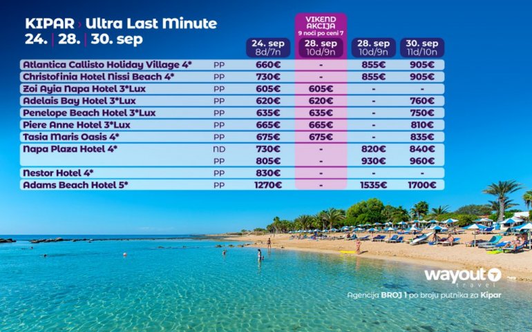 Дефинитивно нова омиљена летња дестинација наших туриста, свакако јесте рајско острво Кипар. Осетите чари Медитерана, фантастичних плажа, веома квалитетних хотела, изузетне гастрономске понуде, као и незаборавног ноћног провода. За наше путнике смо спремили одличну фирст минуте понуду са пажљиво изабраним хотелима, како на основу пређашњих искустава наших клијената, тако и на основу одличних оцена на туристичким порталима.