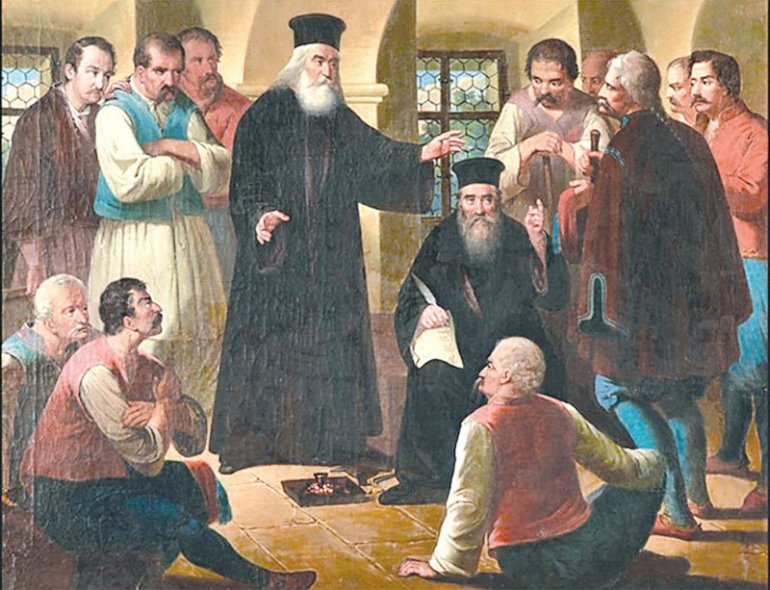 Припрема устанка у Србији: Хаџи-Ђера и Хаџи-Рувим са кнезовима (рад Петра Симића), Фото Профимедија, Музеј "Вука Караџића", Музеј Србије, Народни Музеј, Документација "Новости" и Википедија