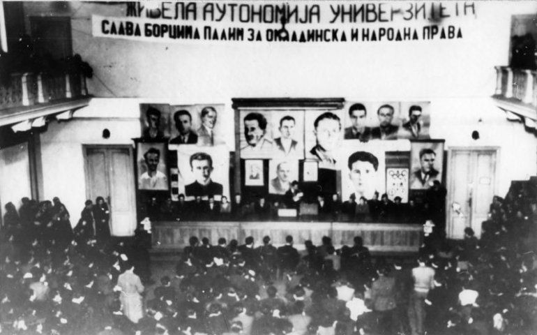 Протестни митинг Уједињене студентске омладине 1939.године , Фото Документација „Новости“ , Архив „Борбе“, Музеј Југославије, Архив Југославије и Википедија