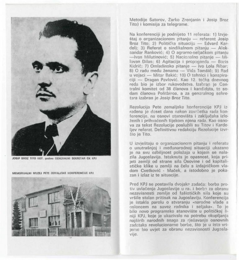 Извештај са пете земаљске конфернције КПЈ у Загребу , Фото Документација „Новости“ , Архив „Борбе“, Музеј Југославије, Архив Југославије и Википедија