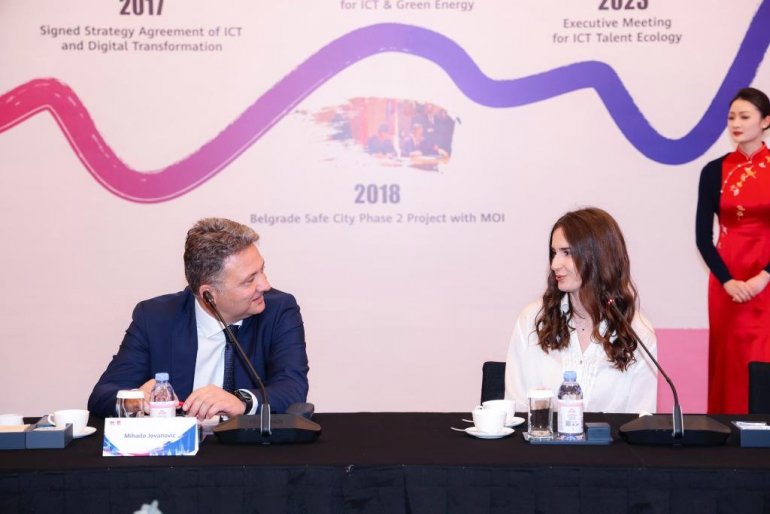 МИНИСТАР информисања и телекомуникација у Влади Републике Србије Михаило Јовановић у току посете Пекингу, у оквиру Трећег форума Појас и пут, састао се са представницима компаније Huawei и њеним потпредседником Јефом Вангом.