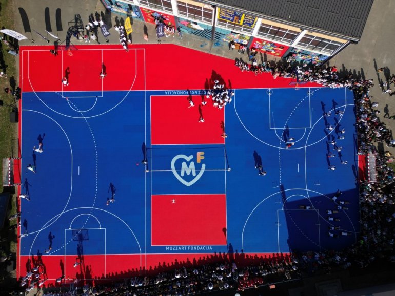 Компанија Моззарт, која је друштвено одговорни рад ове године наставила кроз Фондацију Моззарт, имала је велику вољу, а пронашла је и начин да за осам година комплетно обнови чак сто терена за највољенију игру нације. Са сивог бетона иза зграде се стиже и до НБА, а улични баскет се данас игра на теренима који су кроз акцију из кошаркашких уџбеника добили нови, краљевско плави сјај. У част српске краљице игара.