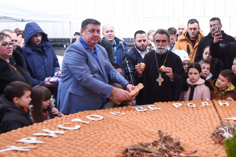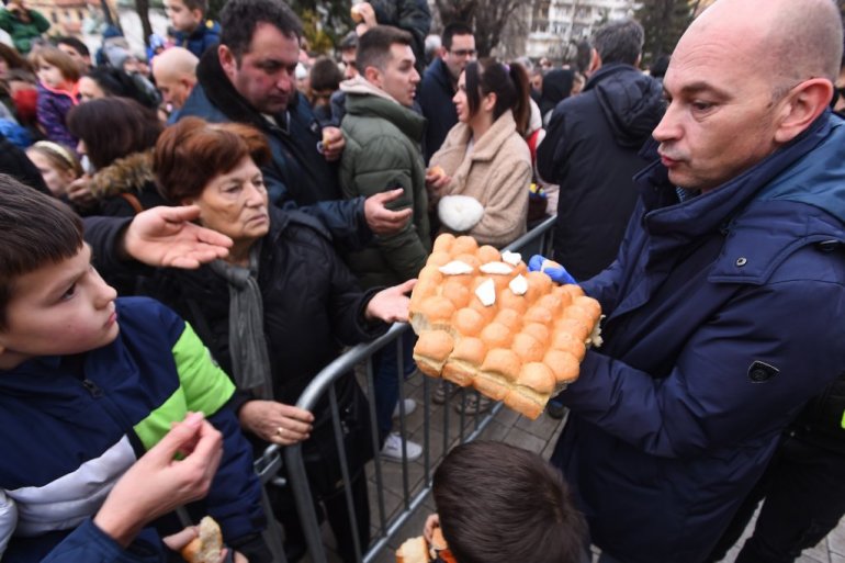 Ломљење чеснице уследило је након божићне литургије у Храму Светог Саве, а традиционално су га организовали Унија пекара Србије, "АС Браћа Станковић" и пекарски еснаф.