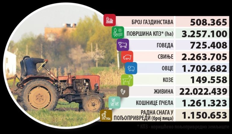 НЕСТАЛО 50.000 ГАЗДИНСТАВА: Први резултати Пописа пољопривреде показују да од 2018. пада број имања и радне снаге