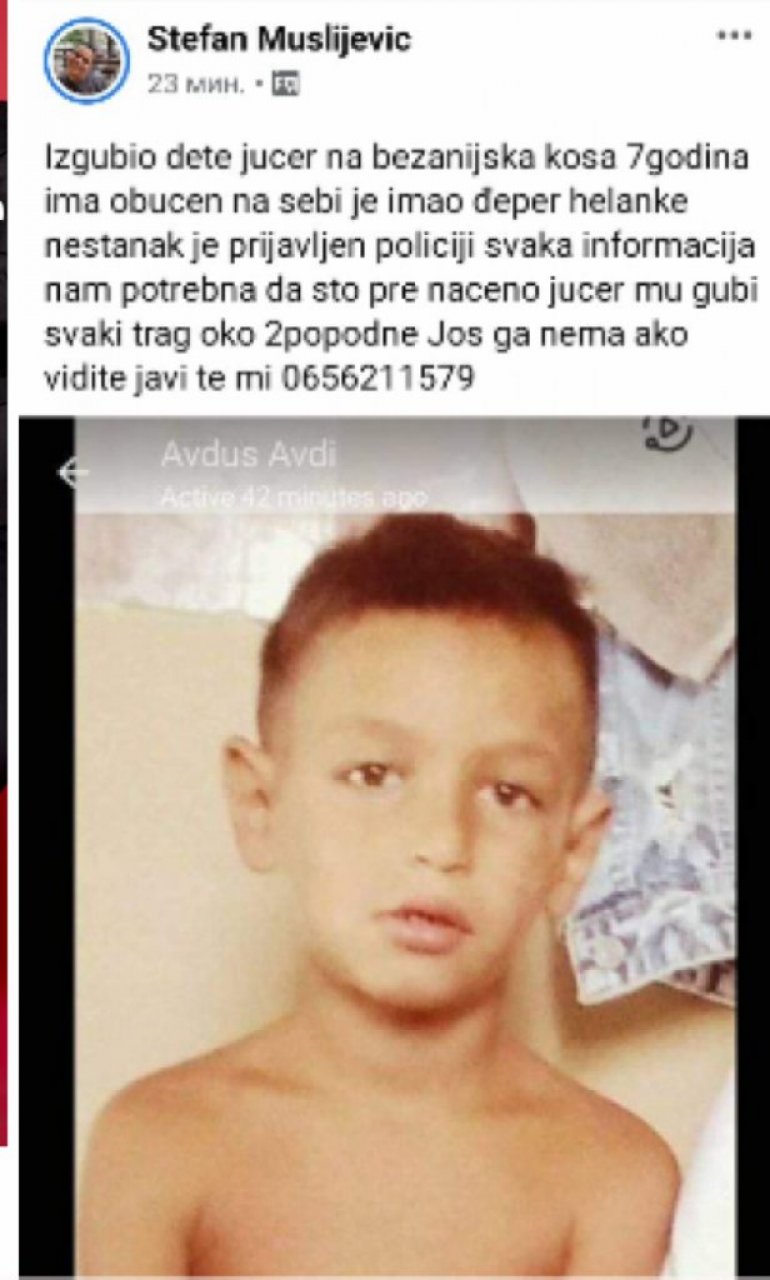 - Изгубио сам дете јуче на Бежанијској коси. Има 7 година, на себи је имао џемпер и хеланке - написао је отац на друштвеним мрежама, а преноси Информер.