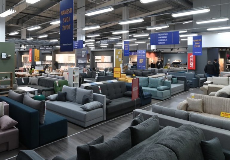 У новом салону Форма Идеале купцима је представљен део асортимана плочастог и тапацираног намештаја Форма Идеале, део асортимана партнерског програма, велики избор ламината, тепиха, расвете, декорације, као и богата понуда малих кућних апарата.