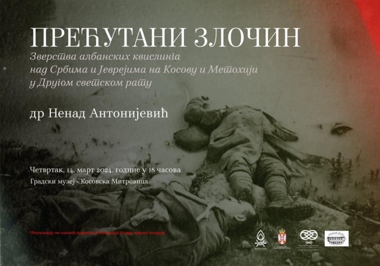 АУТОРСКА изложба др Ненада Антонијевића, музејског саветника у Музеју жртава геноцида, под називом "Прећутани злочин: Зверства албанских квислинга над Србима и Јеврејима на Косову и Метохији у Другом светском рату", биће свечано отворена сутра, у 18 часова, у Градском музеју у Косовској Митровици.