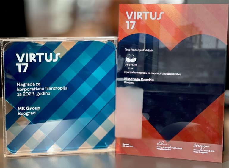 Такође, компанији MK Group уручена је ВИРТУС награда за корпоративну филантропију, за хумане активности реализоване у оквиру друштвено одговорног програма „Подршка породици”, за који је прошле године издвојено укупно милион евра.
