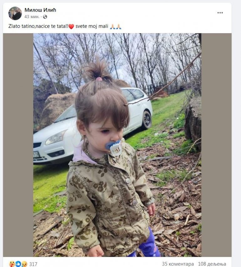 Милош је поделио и слику своје кћерке, која у мају тек пуни две године, сликану јуче у Бањском пољу, пре него што јој се изгубио сваки траг.