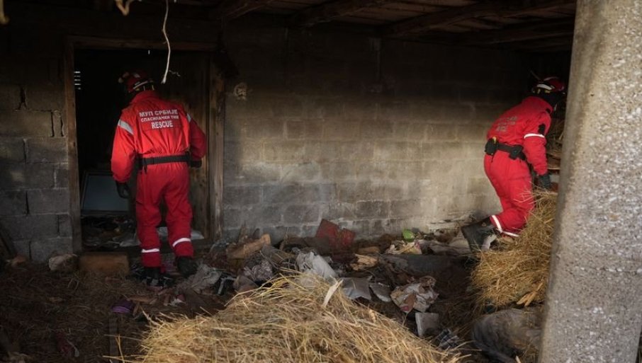 Два Специјалистичка тима за спасавање из рушевина из Београда и Новог Сада, Сектора за ванредне ситуације Министарства унутрашњих послова, ноћас су стигли у Бањско поље и рано јутрос започели детаљну претрагу терена око куће.