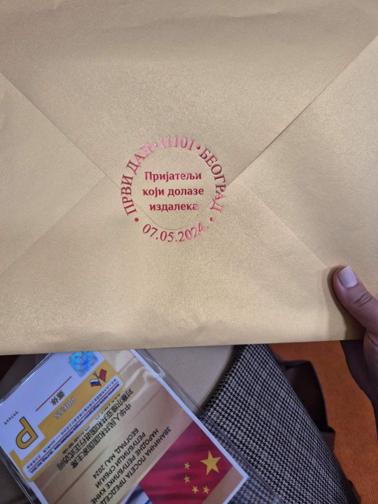 Поште Србије су за пријатеље из Кине спремили посебне марке. На ковертиписало је: "Пријатељи који долазе издалека", са посебно исписаним данашњим датумом.