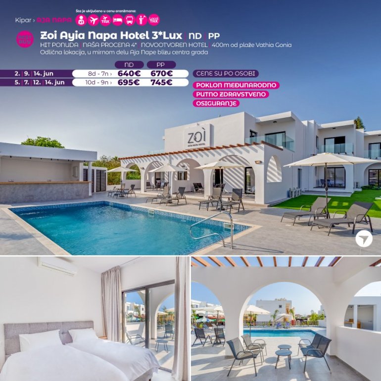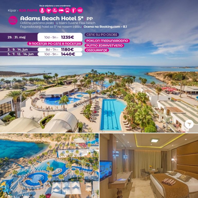 Дефинитивно нова омиљена летња дестинација наших туриста свакако јесте рајско острво Кипар. Осетите чари Медитерана, фантастичних плажа, веома квалитетних хотела, изузетне гастрономске понуде, као и незаборавног ноћног провода.