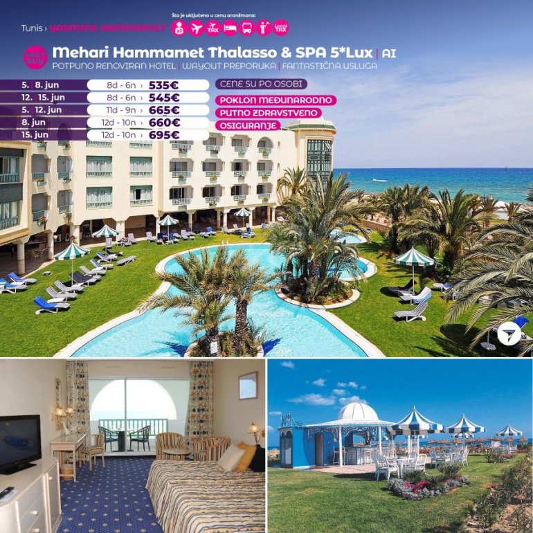 И то на само око 2 сата лета од Вас! Заборавите на свакодневне бриге и препустите се чарима ТУНИСА.