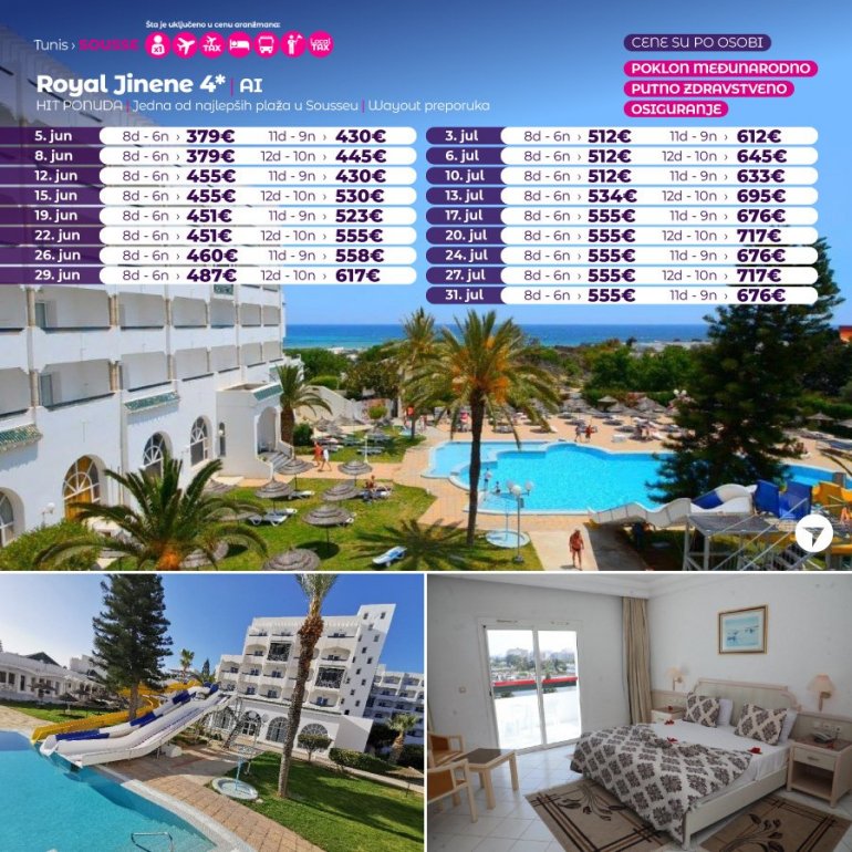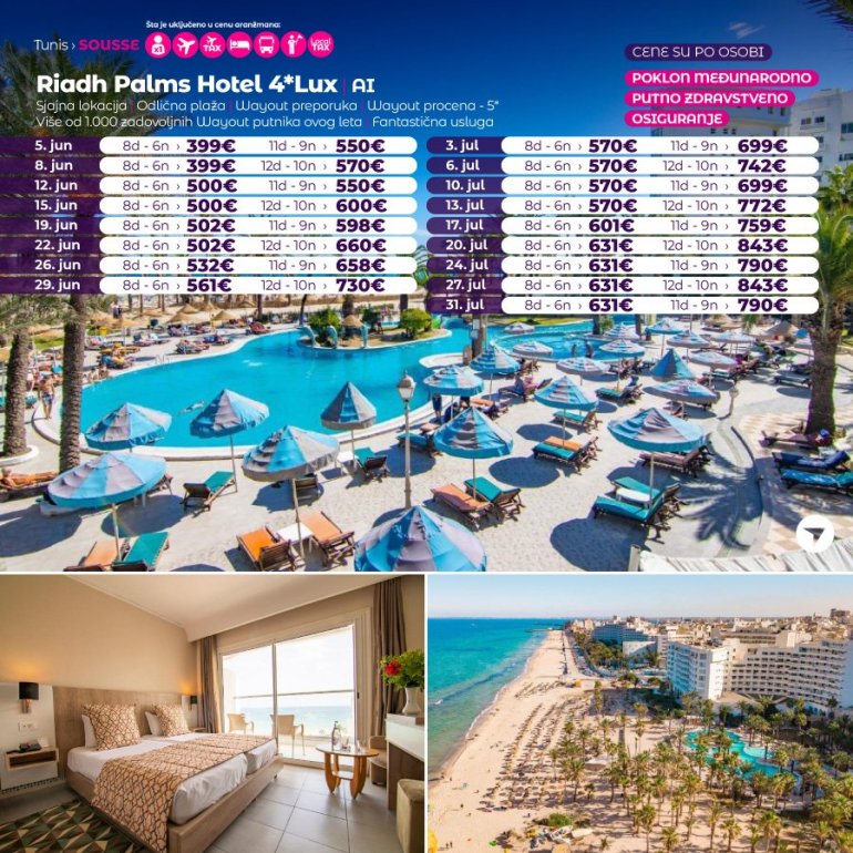 Резервиште одмах јер ласт минуте понуда за поласке 5. 8. 12. и 15. јун још увек траје. Комплетну понуду можете видети кликом на слике у наставку текста.
