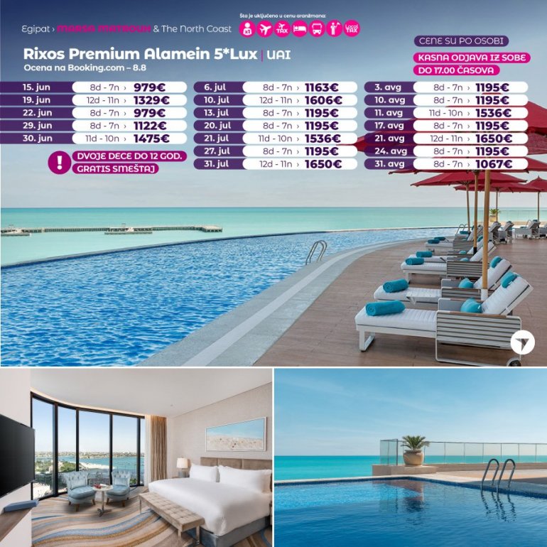 Издвајамо из понуде са наше нове дестинације Marsa Matrouh! Одмах поред познатог Almaza Baya! Двоје деце до 13 година ГРАТИС СМЕШТАЈ!